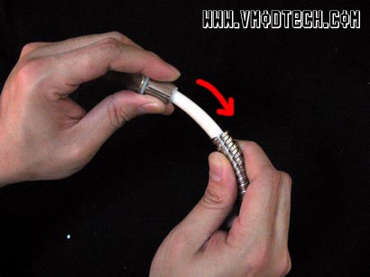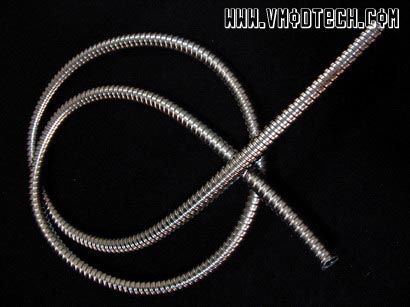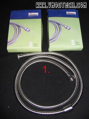 ซึ่งแนวคิดของผมก็มาจากท่อหุ้มสายPower Supply ที่เป็นพลาสติกแบบต่างๆที่มีขายตามร้านอุปกรณ์ตกแต่งเคสทั่วๆไป ซึ่งไปดูๆราคาแล้วก็ช่างสูงบาดใจคนเบี้ยน้อยหอยไม่มีเลยอย่างผมเสียเหลือเกิน แถมมีรอยผ่าตรงกลางสายอีก ทำให้เวลามองเห็นรอยแล้วไม่สวยงาม เมื่อมองดูรุ่นที่เป็นสีเงินแล้วก็คิดในใจว่า”เอ..เคยเห็นที่ไหนน้า..” จนในที่สุดก็คิดออกว่า มันคล้ายๆกับสายฝักบัวแสตนเลสในห้องน้ำบ้านผมนั่นเอง อิอิว่าแล้วก็ลองไปแกะๆดูดีกว่า ว่ามีสิทธิ์เอามาหุ้มสายPower Supply ได้หรือไม่