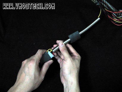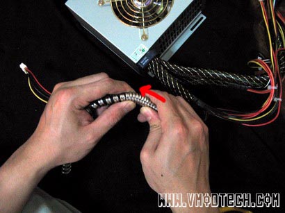 ค่อยๆหมุนท่อแสตนเลสที่ดึงออกเป็นเกลียวแล้ว เข้าไปพันสายPower Supply ตรงบริเวณที่เราใช้เทปพันสายไฟพันไว้ตามภาพครับ