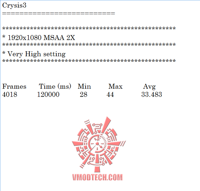 Crysis3 ในระดับ Very High 2X MSAA ก็ยังสามารถทำเฟรมเรตได้ 33.48เฟรมเรต ก็ถือว่าโอเคครับกับการ์ดระดับกลางๆไปหาสูง