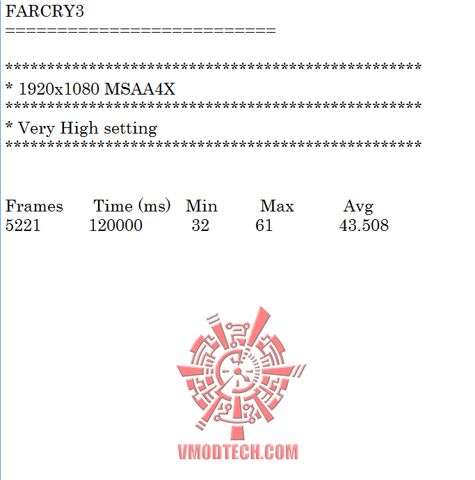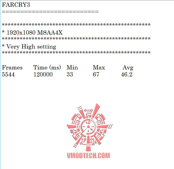 FARCRY3 ความละเอียด 1920X108 Very High MSAA 4X เฟรมเรตอยู่ที่ 46.2เฟรมเรต