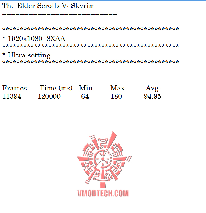 The Elder Scrolls V: Skyrim จัดแบบเปิดเต็ม Ultra 8XAA ก็แรงทะลุ 94.95 เฟรมเรตกันเลยทีเดียวครับ เล่นกันแบบไม่เสียอารมณ์กันอย่างแน่นอน