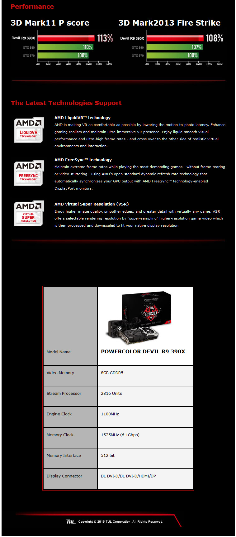 PowerColor Radeon R9 390X DEVIL นั้นเป็นหนึ่งในกราฟฟิกการ์ดตระกูล DEVIL ที่เราคุ้นเคยกันมานาน DEVIL นั้นได้ออกแบบมาอย่างมีสไตล์ ซึ่งแน่นอนว่าดุดันมาก