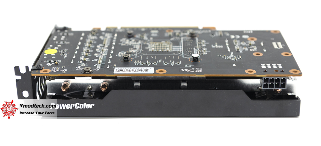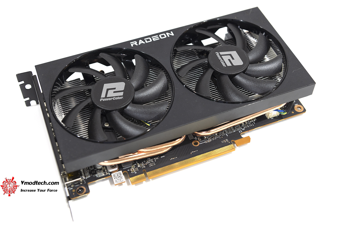 ตัวการ์ด PowerColor Radeon RX 6600 Fighter นั้นมีขนาดที่ต้องถือว่าเล็กครับ ฝาครอบฮีทซิ้งค์มองในมุมนี้ก็สวยแบบเรียบๆครับ