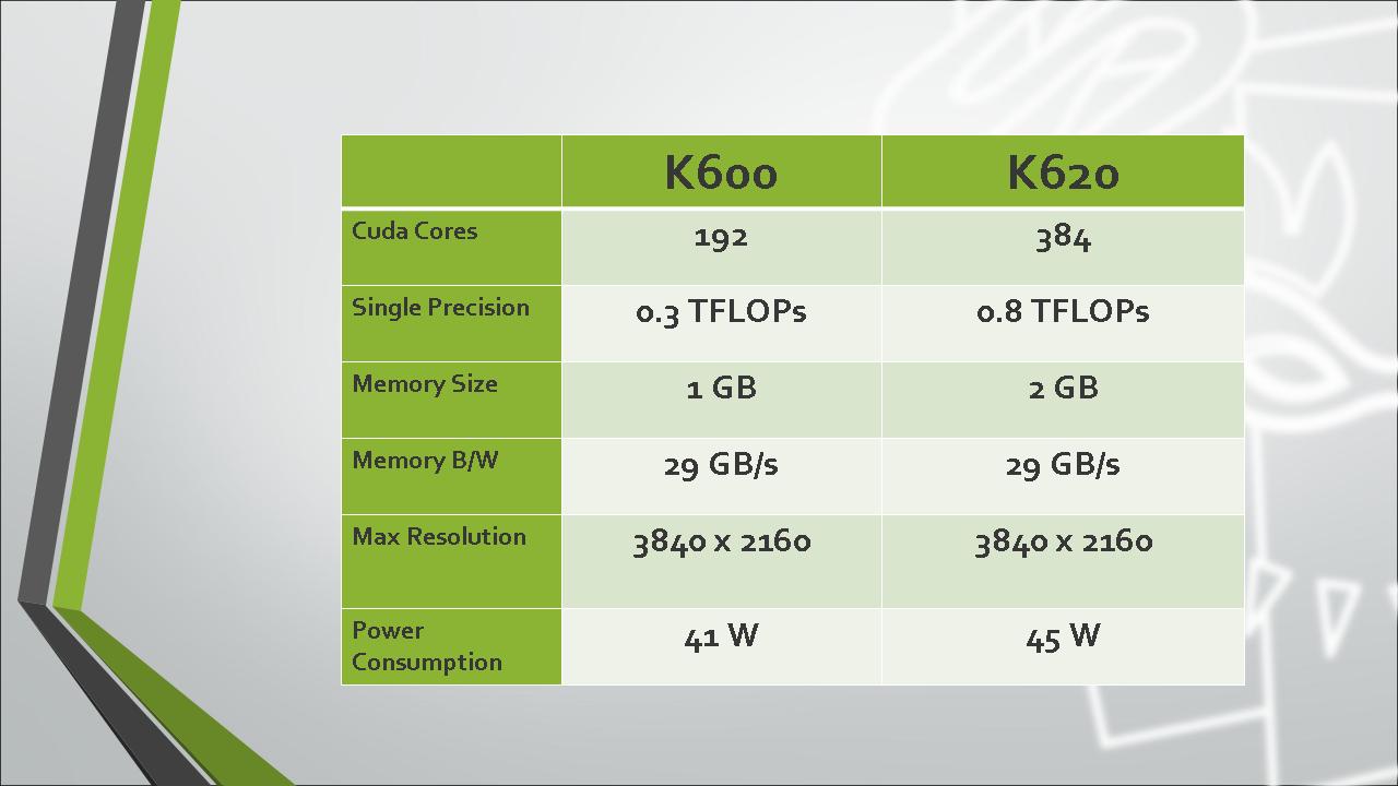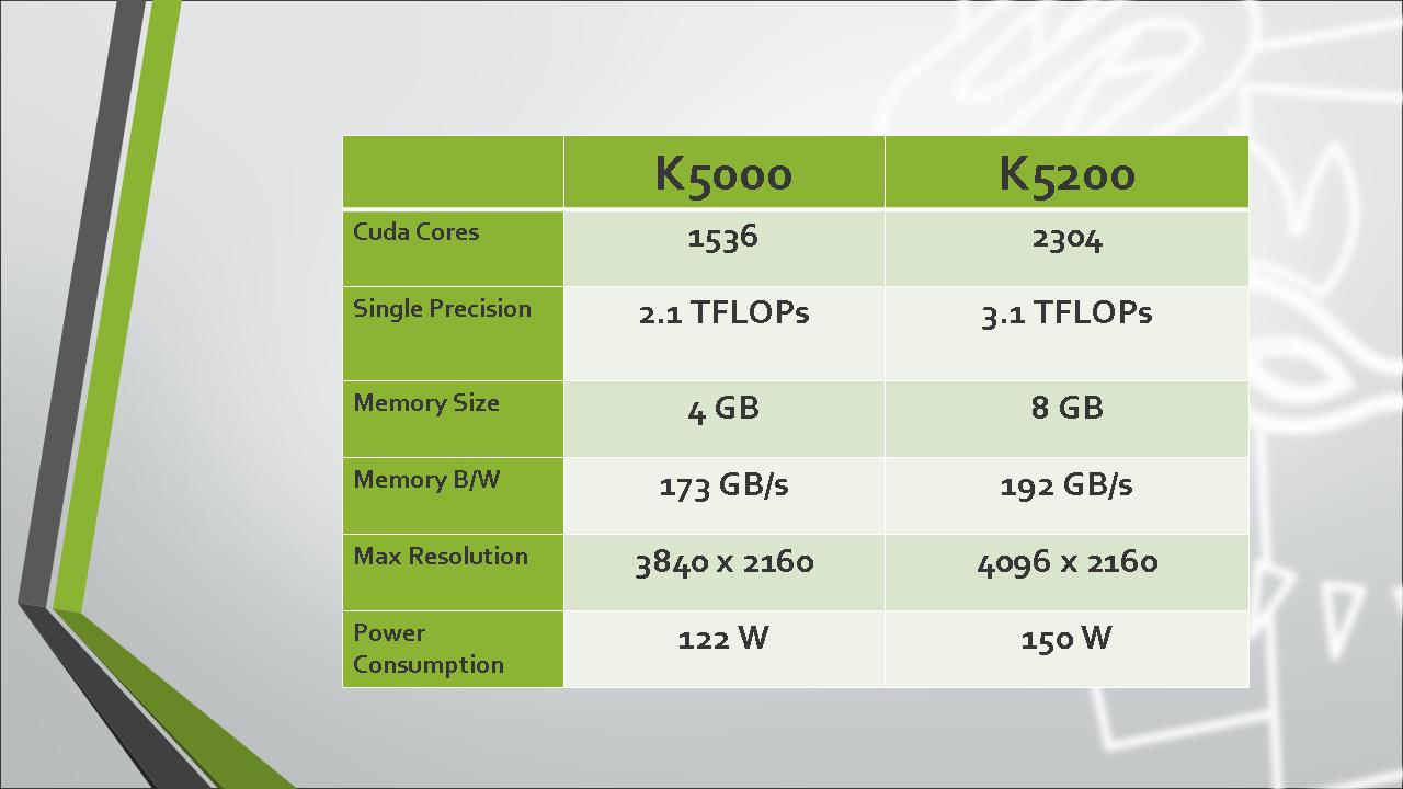 …Quadro นั้นเป็น GPU ในอีก Secment นึงของ NVIDIA ซึ่งความแตกต่างระหว่าง GeForce กับ Quadro นั้นก็คือความสามารถในการเรนเดอร์งานด้าน Professional Graphic Quadro นั้นช่วยในการจำลองพื้นผิว แสงเงา และจำลองชนิดของวัสดุต่างๆได้ ซึ่งจุดนี้จะเป็นจุดที่ทำให้นักออกแบบสามารถสร้างสรรค์งานได้อย่างง่ายดายและรวดเร็วขึ้นกว่ากราฟฟิคการ์ดธรรมดาหลายๆเท่าตัวเลยทีเดียว