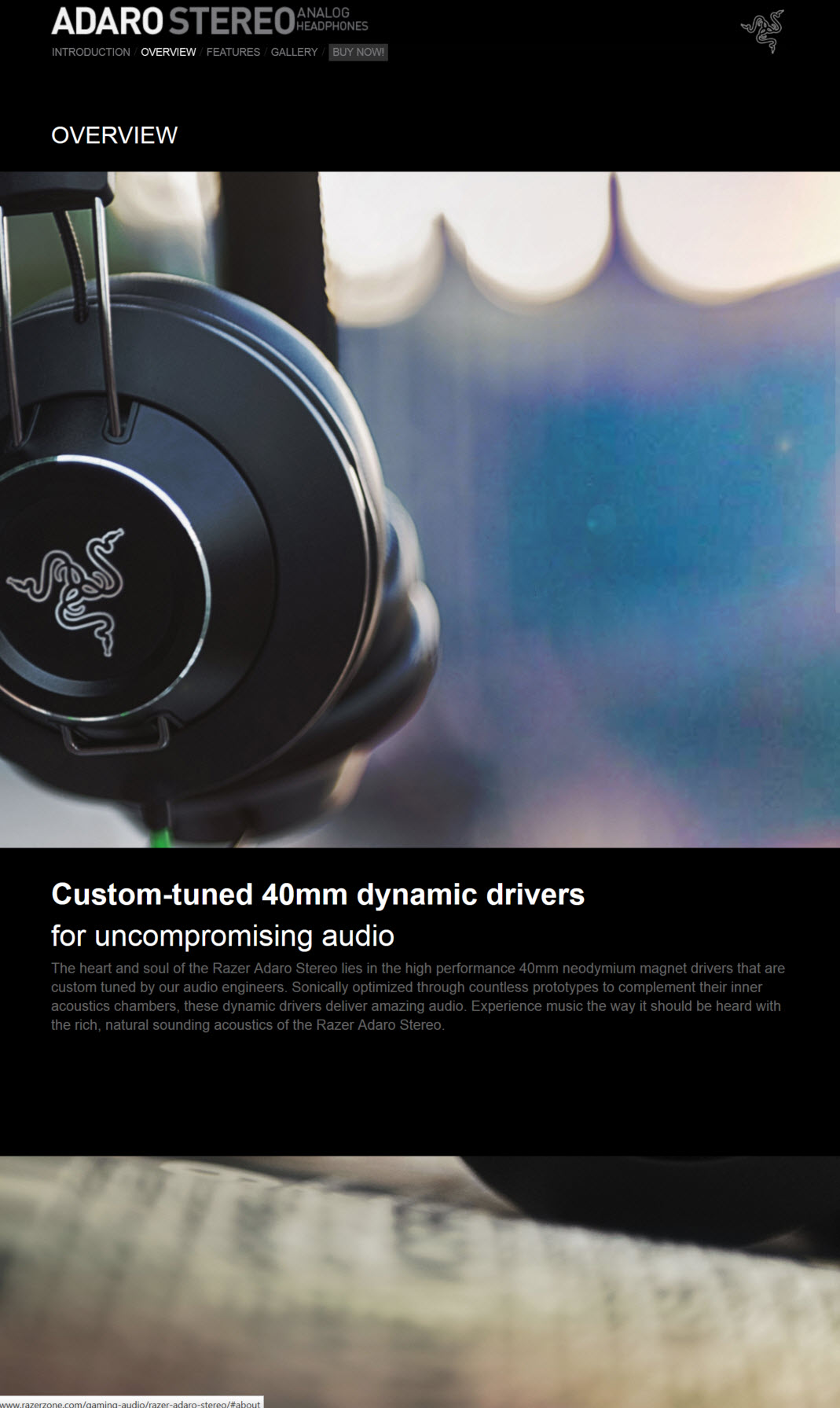 สวัสดีครับ พบกับรีวิวอุปกรณ์ต่อพ่วงเกี่ยวกับเสียงกันอีกเช่นเคยบนหน้าเว็บไซด์ของเรา หลากหลายรุ่นจากแบรนด์ RAZER ที่เราได้ทำการรีวิวแนะนำแนวเสียงไปครับ วันนี้มีรุ่นใหม่อีกรุ่นนึงมาคุยให้ฟัง ชื่อรุ่นว่า ADARO STEREO ซึ่งมันเป็น Analog Headphone ที่ออกแบบมาได้แปลกตาหูฟังจากค่ายนี้มากทีเดียว ในซีรีย์ ADARO นั้นจะมีทั้งหมดสี่รูปแบบคือ ADARO IN-Ear, ADARO DJ, ADARO Wireless และตัวนี้ครับ ADARO STEREO รูปร่างหน้าตาก็คล้ายกันและสวยงามเป็นเอกลักษณ์คล้ายหูฟังออดิโอไฟล์ชั้นดี เรามาชมรายละเอียดกันเลยครับ