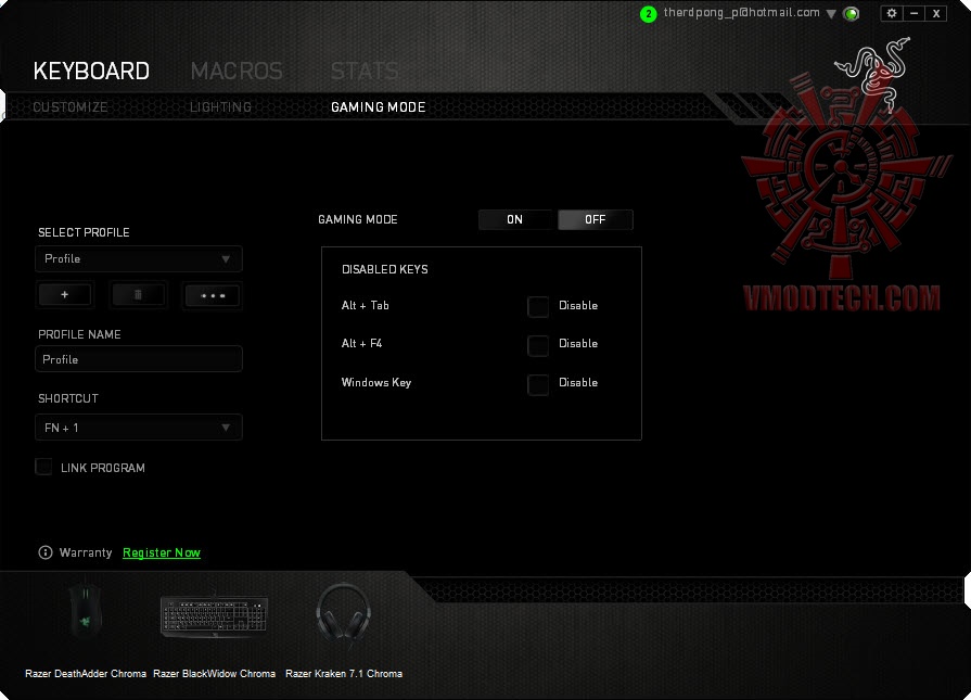 เกมส์มิ่งโหมดนี้เราสามารถตั้งได้ว่าจะไม่ให้ปุ่มไหนทำงาน เนื่องจากบางปุ่มนั้นเมื่อกดลงไประหว่างเล่นเกมส์จะเด้งออกมาที่หน้า desktop ทำให้ขาดช่วงในการเล่นเกมส์