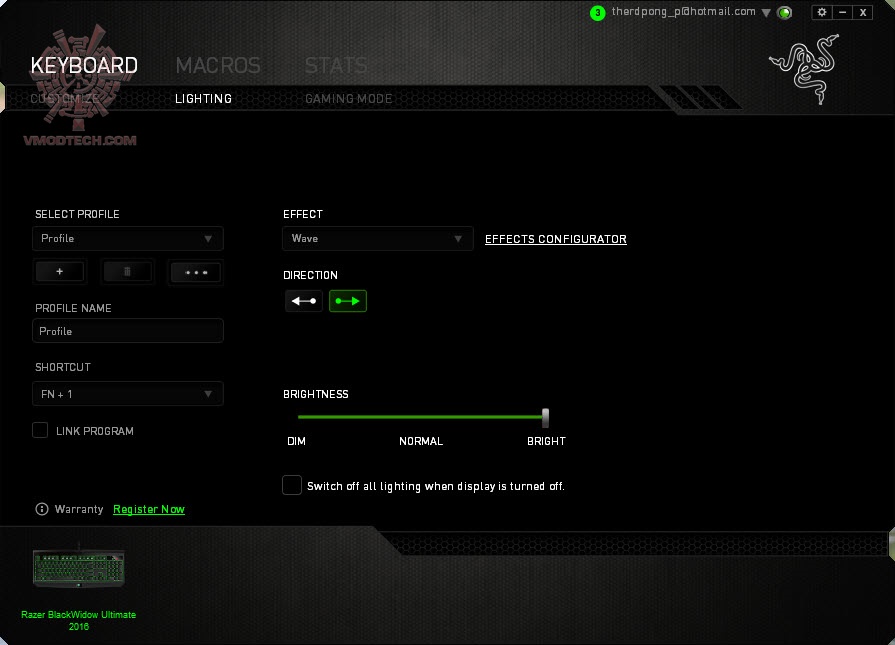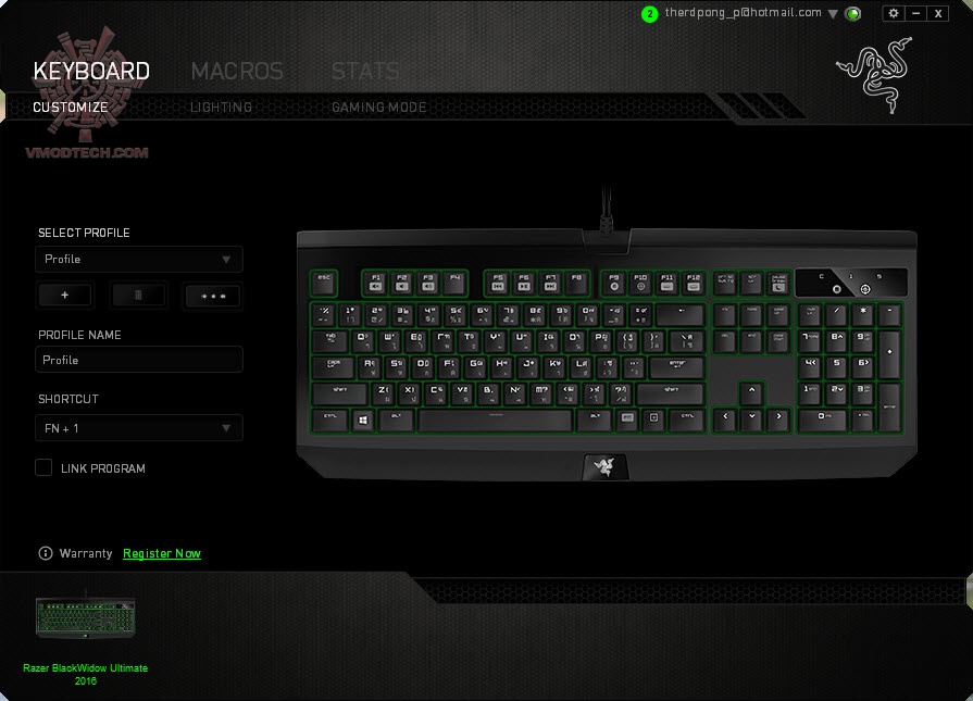 ตัว Software นั้นสามารถดาวน์โหลดได้จากหน้าเว็บไซด์ของ RAZER เองครับ รูปแรกนี้จะเป็นหน้าปรับแต่งพื้นฐานของคีย์บอร์ด