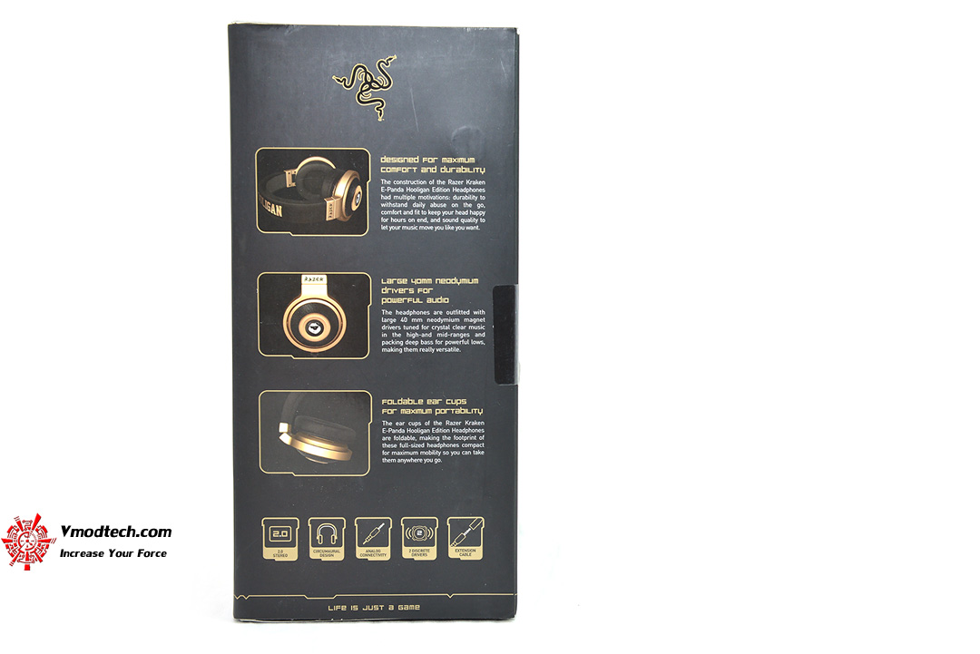 คุณสมบัติของ RAZER Kraken E-Panda Hooligan Headphones ที่ด้านข้างกล่อง
