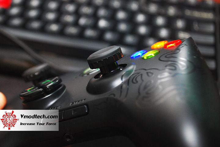 เล่นไปซักพักนึงนี่ ความแตกต่างในการกดก็พอจะรู้สึกได้ครับ คือที่ปุ่มต่างๆนั้น ทาง RAZER จะออกแบบมาเป็นสวิทซ์ที่ใช้แรงกดน้อยมากครับ คล้ายๆกับคีย์บอร์ดที่มีสวิทซ์แบบ เชอรี่บลู อย่างงัยอย่างงั้นเลย คือกดแล้วมีเสียงกริ๊กเบาๆ อันนี้ต่างจากจอยจาก XBOX ที่เป็นตัวมาตรฐานแน่นอนครับ ความแตกต่างอีกอย่างนึงที่มีบน ONZA ตัวนี้ และทำให้มันเป็น Tournament Edition คือ มันสามารถปรับความหนืดและของก้านอนาล๊อคทั้งสองฝั่งที่บริเวณนิ้วโป้งครับ หลังจากที่ผมได้ลองปรับดูแล้วเนี่ย เยี่ยมมาก คือนอกจากสั่นตามจังหวะการเร่งเครื่องในเกมส์แล้วเนี่ย ความหนืดหรือแรงต้านยังทำให้เพิ่มอรรถรสในเกมส์เข้าไปอีกครับ โอ้ย เยี่ยม