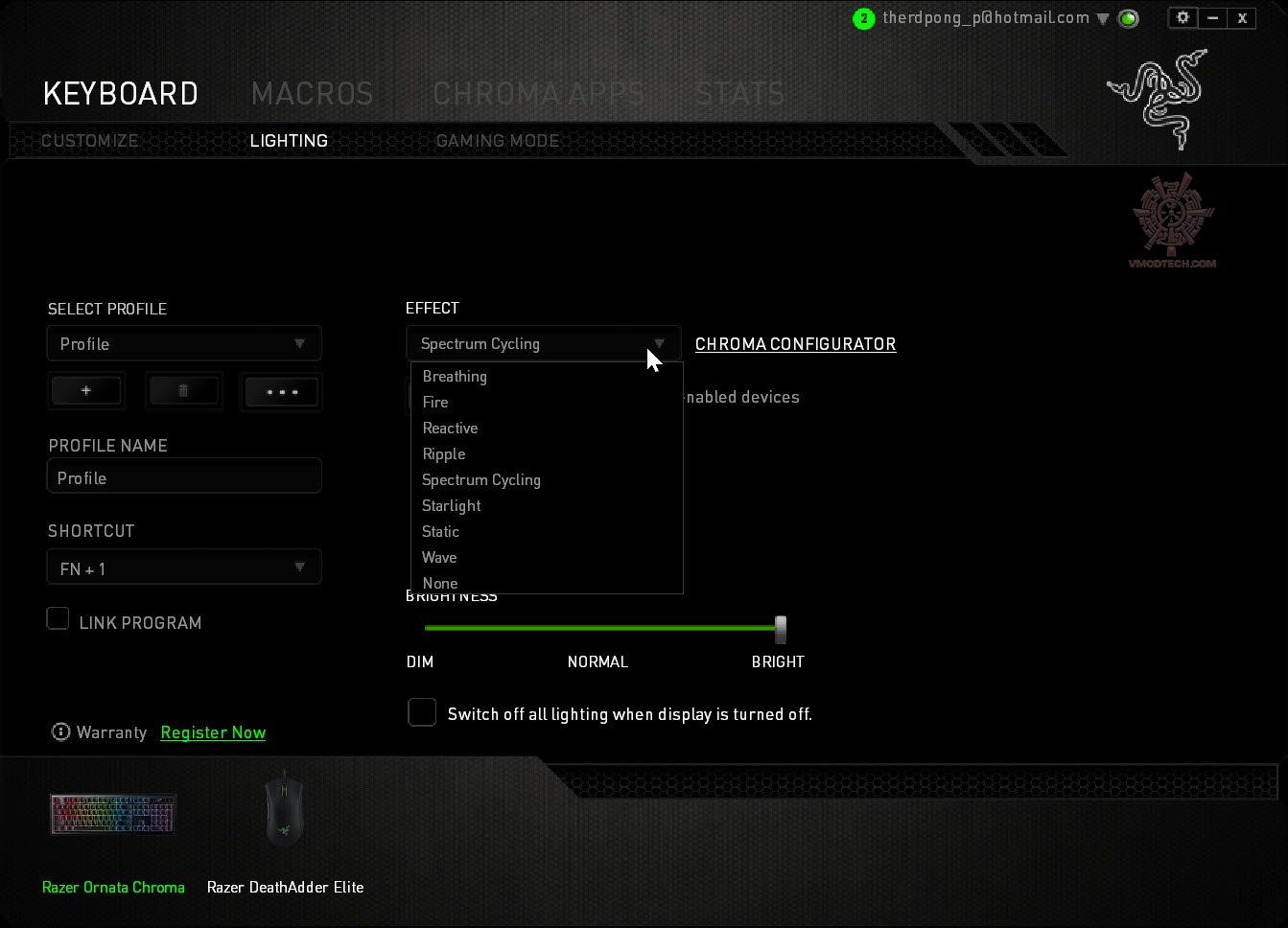 และเราสามารถกำหนดคุณลักษณะพิเศษของแสงสีได้อีกจากหัวข้อ CHROMA CONFIGURATOR ครับ โดยจะเป็นการเพิ่มแสงสีเข้าไปบนพื้นฐานเอฟเฟกปกติ