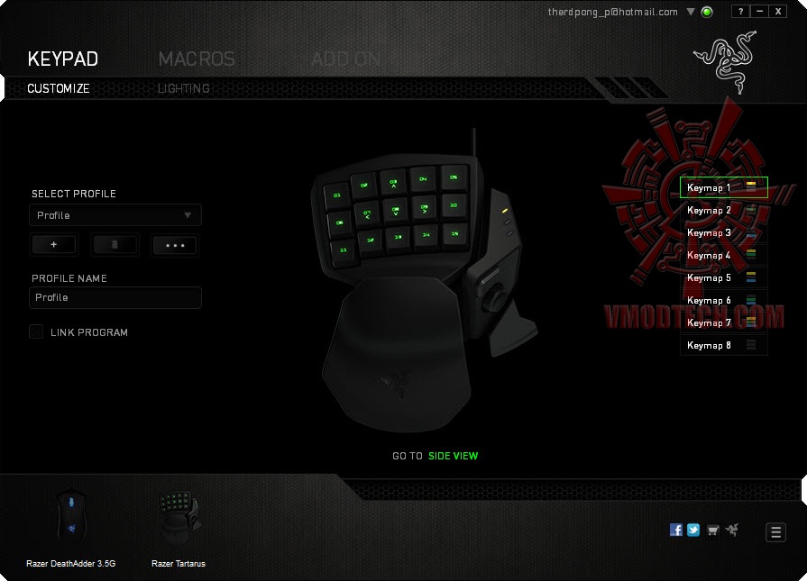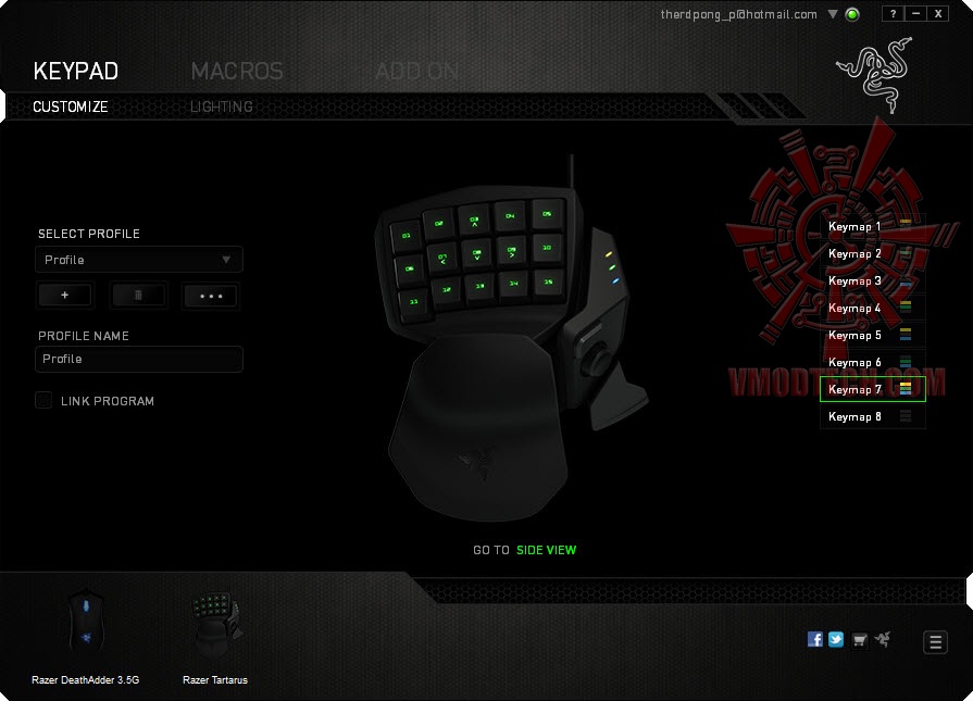 สังเกตุจาก Keymap ครับ ผมลองเปลี่ยนเป็น keymap 7 ไฟที่ด้านขวามือของ TARTARUS ก็จะเปลี่ยนสีไปด้วยทั้งนี้ก็เพื่อให้เป็นจุดสังเกตุว่าตอนนี้เราใช้คีย์แมพตัวไหนอยู่