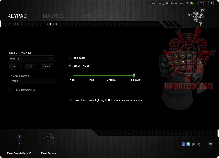 หน้านี้จะเป็นส่วนของเกมส์แสงสีบนตัว TARTARUS ปรับได้สี่ระดับครับ