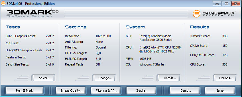 คะแนนของทั้ง 3Dmark 06 และ PCmark นั้นก็อยู่ในระดับที่ netbook ส่วนใหญ่ทำได้ครับ ซึ่งถือว่าค่อนข้างต่ำ ไม่มีเซอไพรส์อะไร