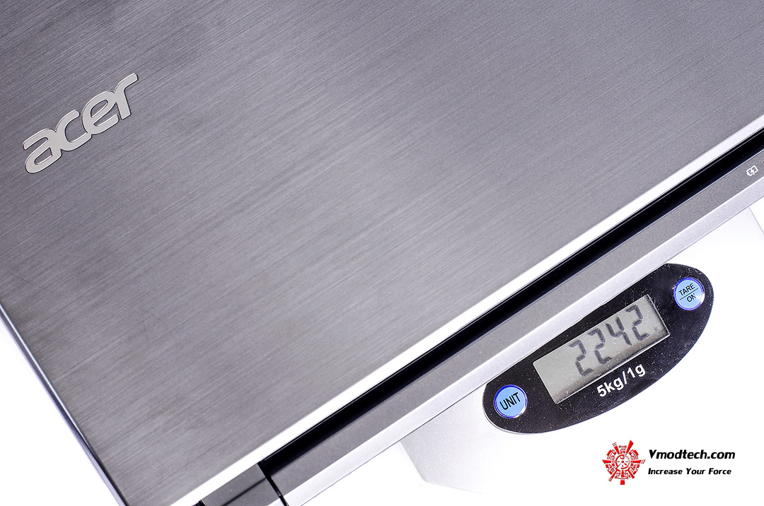 วัสดุจับสำผัสได้ถึงความแข็งแรงทนทานครับ ขนาดตัว 381.6 x 256.0 mm. หนัก 2.20 kg. ตามที่ Acer เขาระบุไว้
