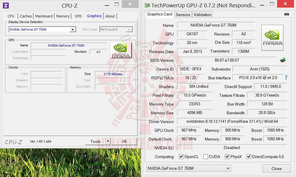 System Properties in CPU-Z 1.65.0 And GPU-Z 0.7.2