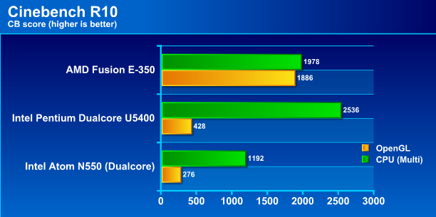 คะแนนของ Cinebench R10 นั้นออกมาชัดเจนเลยครับว่า “เร็วกว่า Atom แต่ช้ากว่า Pentium” เฉพาะแค่ในส่วนของประสิทธิภาพตัว CPU