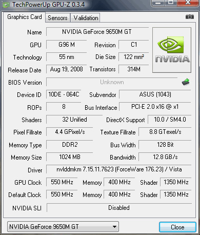 | Graphics Adapter | Nvidia Geforce 9650M GT |