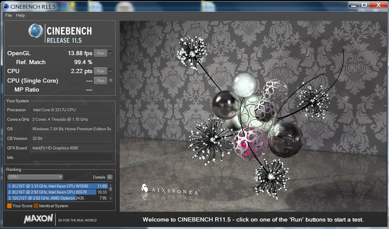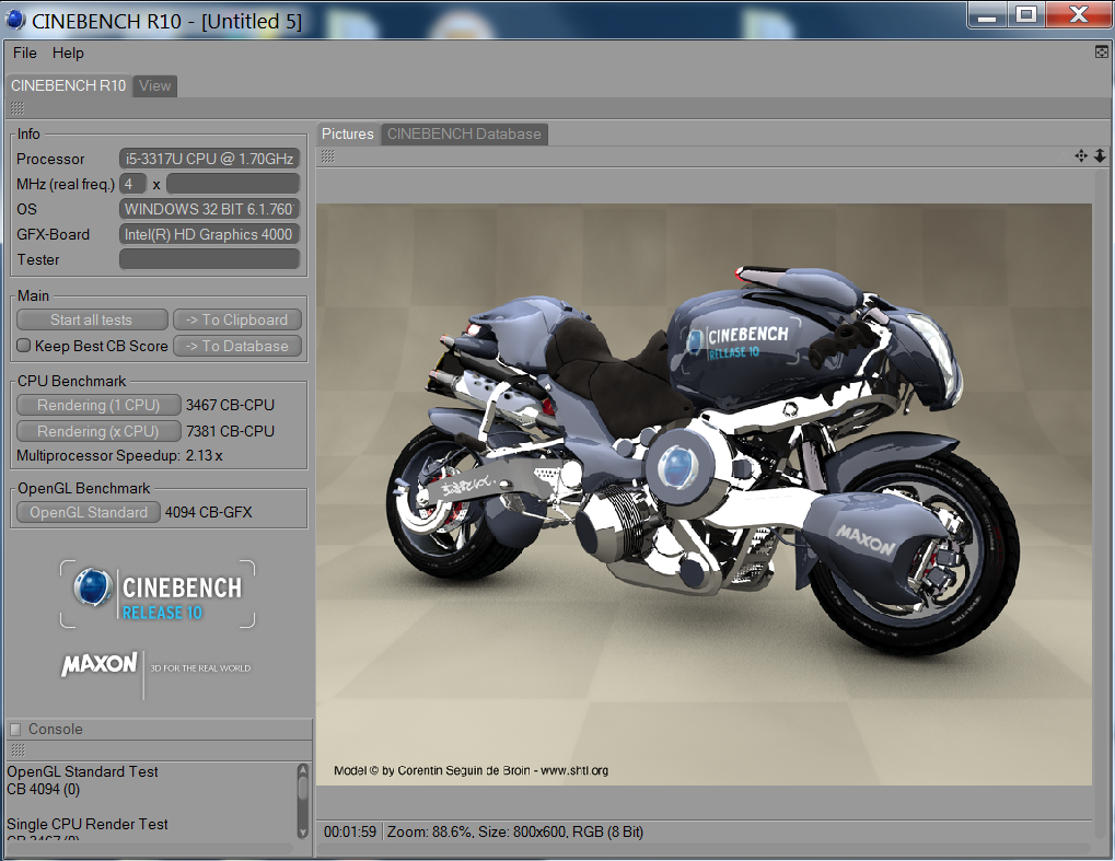 คะแนนผลทดสอบ Cinebench ถือว่าทำได้น่าประทับใจเลยทีเดียวครับ โดยเฉพาะ Open GL test ก็เร็วขึ้นอย่างเห็นได้ชัดเลยเมื่อเทียบกับกราฟฟิค HD3000 ในรุ่นก่อน