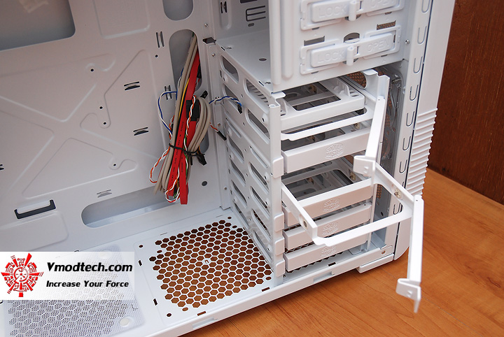 …ภายในของ CM690 นั้นดูเหมือนจะเป็นจุดที่ผมคิดว่าเป็นสิ่งที่ทำให้มันประสบความสำเร็จมากๆครับ คือการจัดการพื้นที่ใช้สอย ตั้งแต่การนำ PSU มาติดตั้งด้านล่าง ฮาร์ดดิสก์แบบหันหัวออกหาฝาเคสพร้อม Bay ทุกช่อง ทำให้ถอดติดตั้งง่าย รวมไปถึง 5.25 bay ก็เป็น tools free อีกด้วย รวมไปถึงบนเพดานเคสที่มีรูระบายความร้อน ก็ได้มีการติดตั้งพัดลมดูดอากาศออกขนาด 140mm มาให้อีกตัวหนึ่งด้วย เบ็ดเสร็จแล้ว เคสตัวนี้ ก็จะมีพัดลมแถมมาให้ถึงสามตัวเลยทีเดียวครับ
