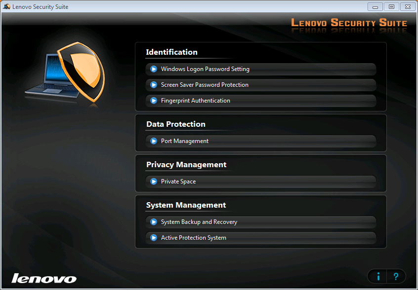 ทางด้านของความปลอดภัยนั้น ก็มี Lenovo Security Suite สามารถสั่งรันได้จาก softkey บริเวณใกล้ๆลำโพง ซึ่งเป็นซอฟท์แวร์ที่สามารถจัดการในเรื่องของการแบกอัพข้อมูล ระบบสแกนลายนิ้วมือ และระบบป้องกันการนำเอาแฟลชไดร์ฟไม่พึงประสงค์มาเสียบกับพอร์ต USB ของเราได้อีกด้วย