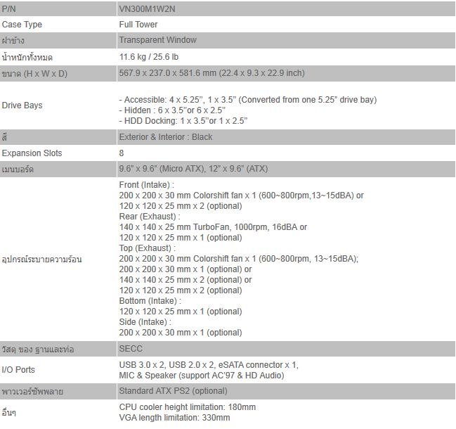 ในสเป็คนั้นระบุมาว่าเป็นเคสเหล็ก SECC ขนาด Full Tower แต่ความเห็นส่วนตัวของผมคิดว่า ขนาดระดับนี้ ยังไม่น่าจะเรียกได้ว่า Full Tower ได้เต็มปากนัก เพราะถ้าย้อนกลับไปดูเคส Full Tower แท้ๆจริงๆสมัยก่อนอย่าง Thermaltake Shark นั้นจะมีความสูง และ 5.25″ bay ที่สูงและมีมาให้เยอะกว่านี้มากๆครับ