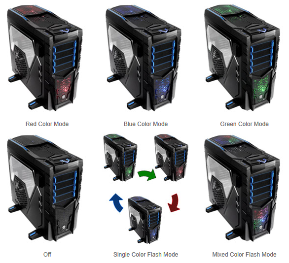 มาดูที่พอร์ตเชื่อมต่อ นอกจากพอร์ตพื้นฐาน ที่รวมเอา USB 3.0 ที่ใช้คอนเน็กเตอร์แบบที่สามารถเสียบลงบนเมนบอร์ดได้โดยตรง และ SATA Docking ที่สามารถเสียบได้ทั้งฮาร์ดไดร์ฟขนาด 3.5 และ 2.5 นิ้วแล้ว ก็ยังจะมีปุ่มสำหรับปรับความเร็วรอบพัดลม และปรับลักษณะสีของไฟ LED ติดพัดลม เลือกได้ หลากสี ตามภาพด้านล่าง