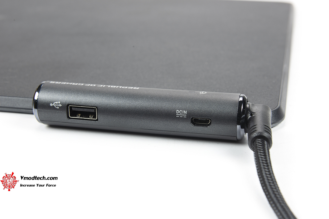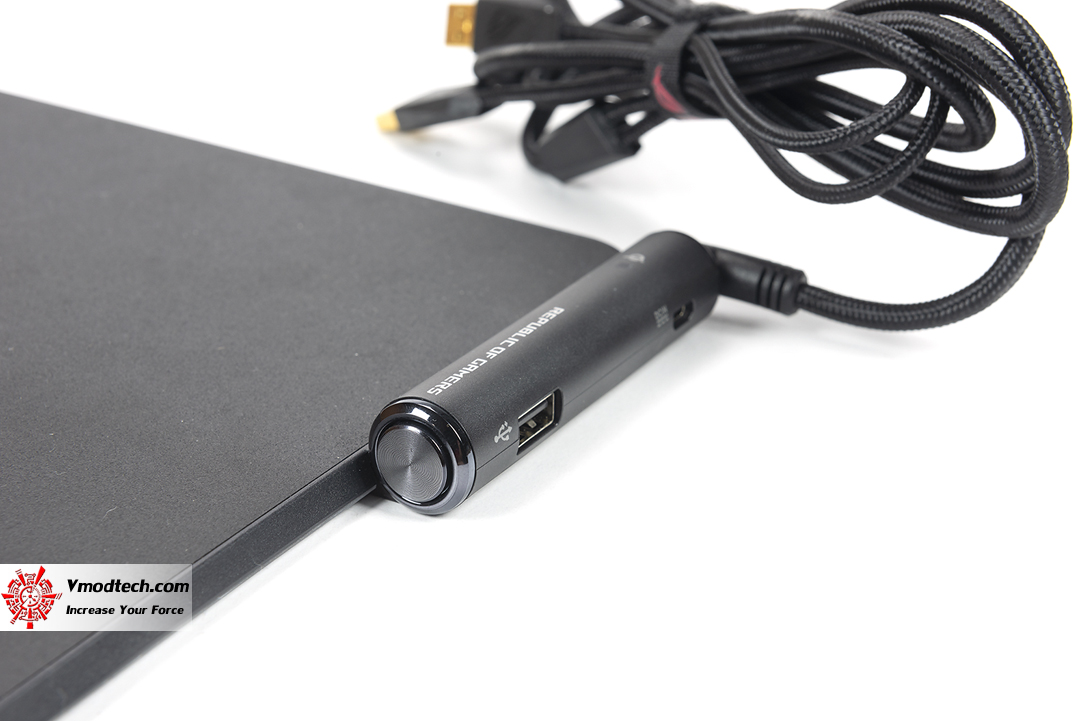 สวิทซ์เปิดปิดไฟ และยังสามารถเลือกปรับให้ทำหน้าที่เป็นการสลับแสงสีและเอฟเฟกครับ ซึ่งการสั่งงานปุ่มนี้ก็สามารถปรับเปลี่ยนได้จาก Software ASUS Armory II