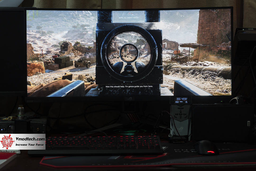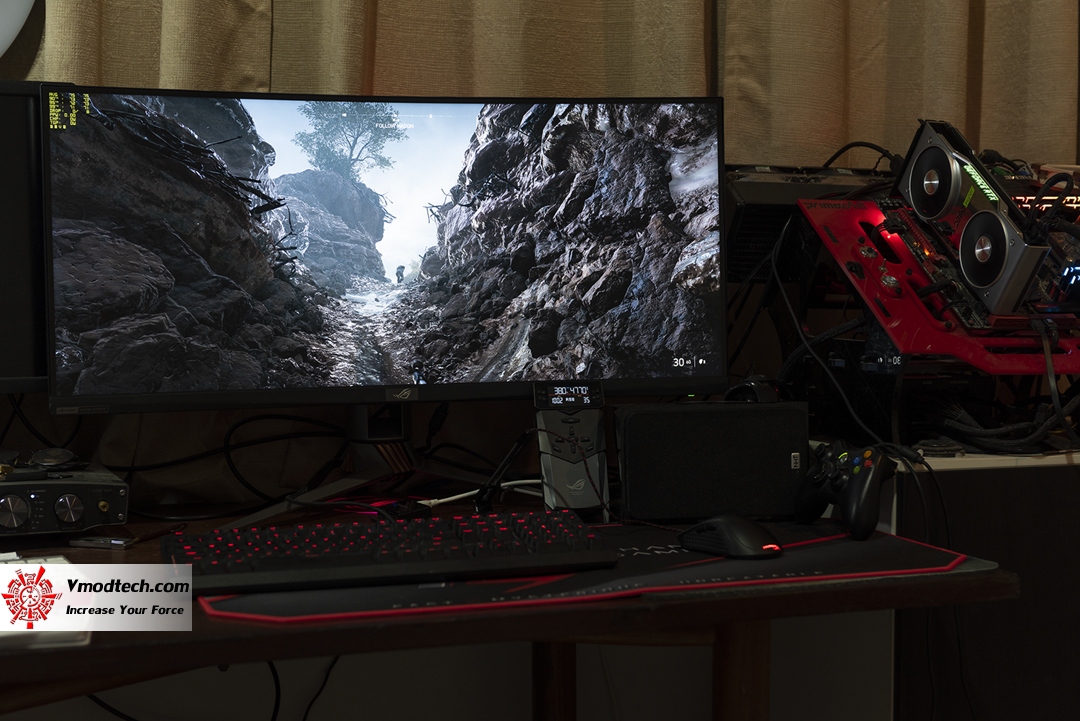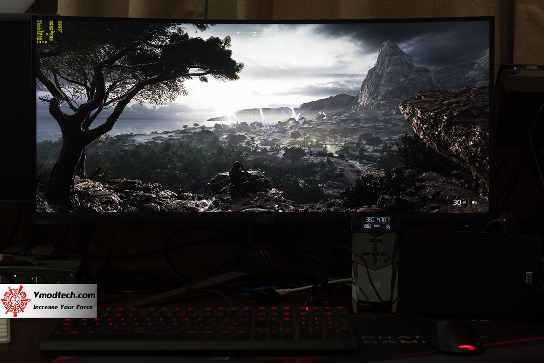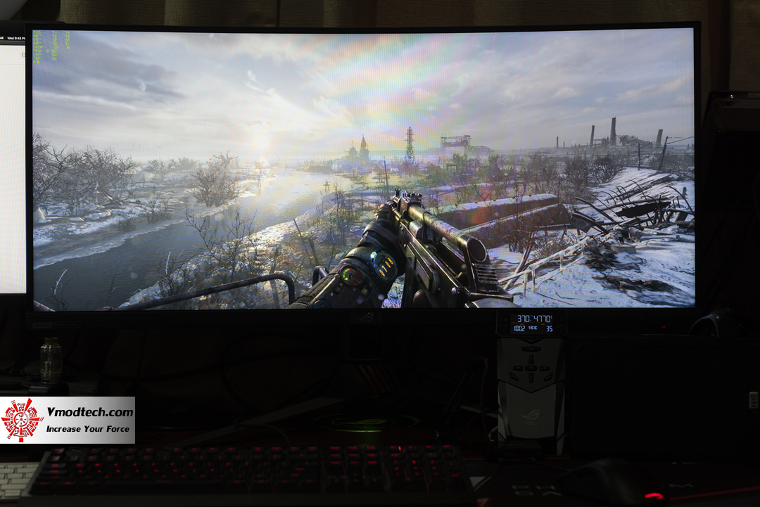 ASUS ROG Swift PG35VQ ซึ่งเราได้ทำการคาลิเบรทตัวจอให้ดีที่สุดนั้น มันสร้างความประทับใจให้กับผมผู้ทดสอบมากๆ โดยในขณะทำการทดสอบนั้นได้เสียบเชื่อมต่อกับกราฟฟิกการ์ด NVIDIA GeForce RTX 2080 SUPER ที่สามารถเค้นพลังด้านกราฟฟิกในเกมส์ BattleField V ออกมาได้อย่างหมดจดบนความละเอียด 3440 x 1440 และการตั้งค่าที่ Max Fidelity การเปิด HDR นั้นมันช่วยสร้างความน่าสนใจของภาพในเกมส์ได้ดีสุดๆ รวมถึงเกมส์ Metro Exodus ด้วยครับ มันทำให้เราสามารถมองเห็นถึงความใกล้เคียงกับสิ่งที่ให้ในชีวิตจริงขึ้นไปอีก ด้วยไดนามิกส์เรนจ์ของแสงและแอมเบียนที่ใกล้เคียงความเป็นจริงมาก ด้วยเทคโนโลยี G-Sync Ultimate การเคลื่อนที่ของตัวละครในเกมส์นั้นราบลื่นด้วยรีเฟรชเรท 200 Hz บนจอมีขนาด 35 นิ้ว ซึ่งเป็นขนาดที่ใหญ่เต็มอิ่มกว่ามาก