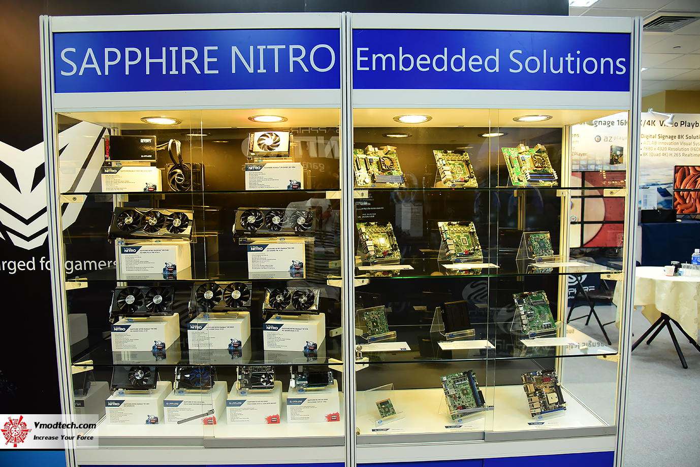 ถัดมาข้างๆก็จะเจอตู้โชว์การ์ดจอ Sapphire Nitro และ Embedded Motherboards