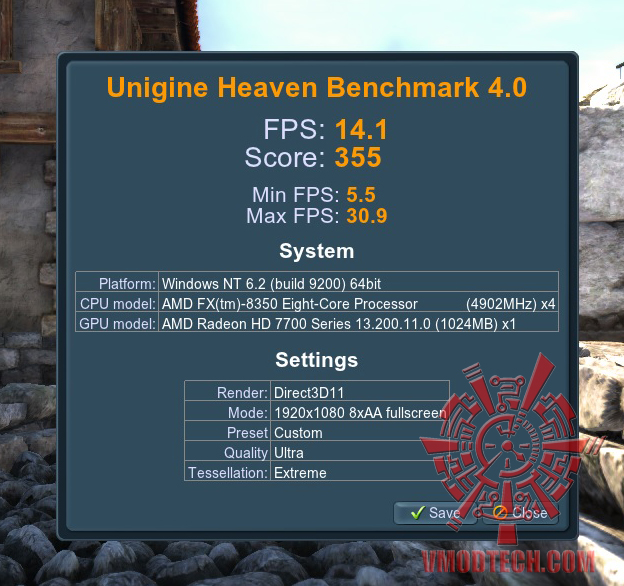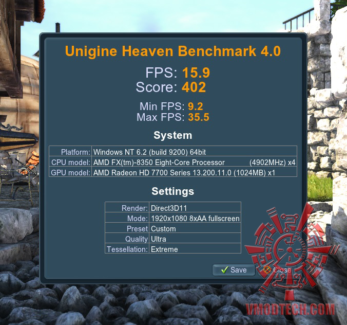 Unigine Heaven 4.0 ก็แรงแบบเปิดเต็มหมด อยู่ที่ 15.9เฟรมเรต