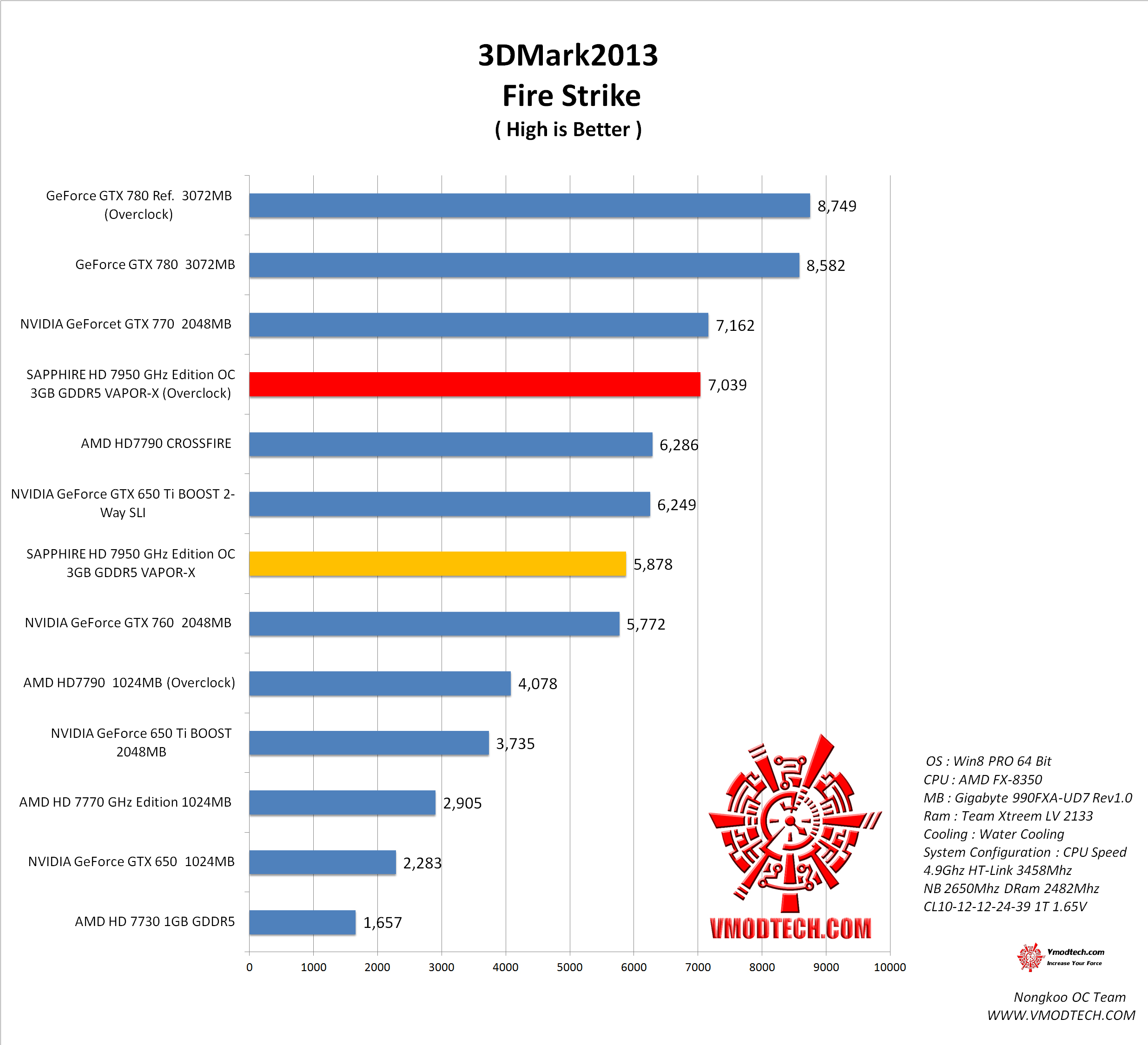 สำหรับชุดทดสอบ 3DMark 2013 ชุดทดสอบ Fire Strike คะแนนออกมา 7039คะแนน กดกันแบบบรรดาการ์ดรุ่นใหญ่ๆมีกระเทือนครับ