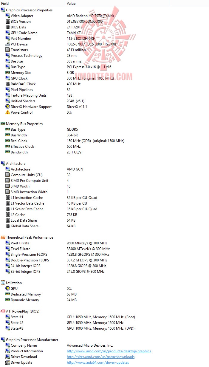 SAPPHIRE HD 7970 GHz Edition 3GB GDDR5 VAPOR-X Details from AIDA64