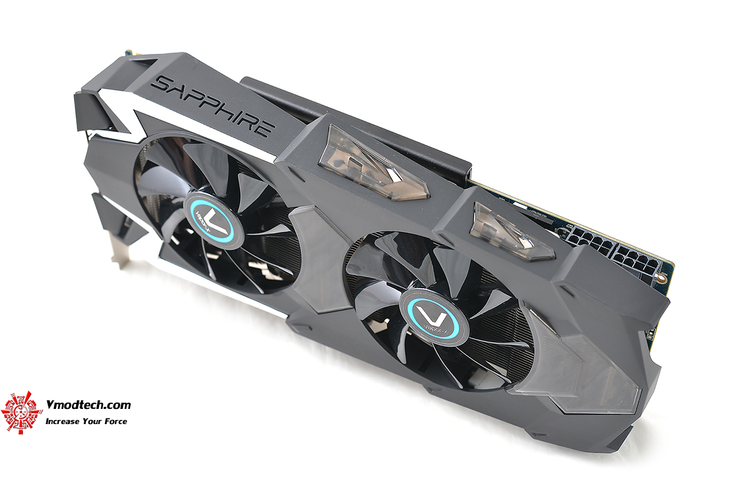 สันการ์ดนั้นมีเอกลักษณ์เป็นของตัวเอง ด้านท้ายการ์ดมีการเซาะร่องเป็นสัญลักษณ์ SAPPHIRE เอาไว้ เมื่อเสียบใช้งานจะมีแสงไฟแสดงภาวะโหลดการทำงานด้วยครับ