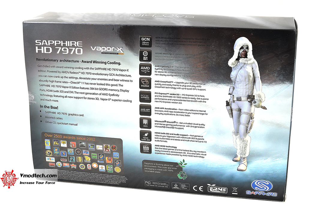 กล่อง SAPPHIRE HD 7970 GHz Edition 3GB GDDR5 VAPOR-X นั้นออกแบบสีสรรได้สวยงามเป็นเอกลักษณ์ที่แปลกตาและน่าสนใจมากครับ