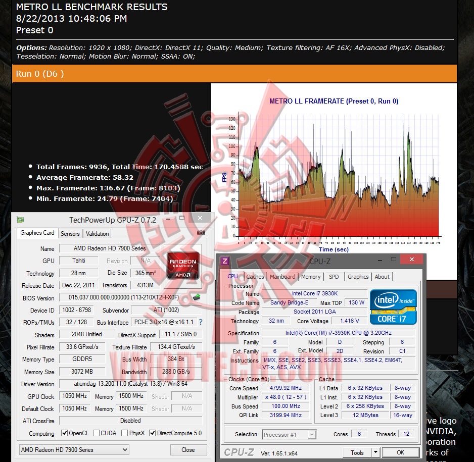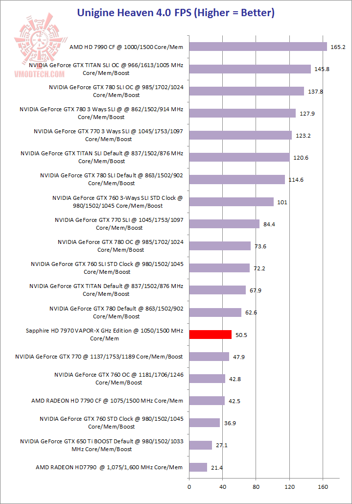 ความเร็วมาตรฐานของ SAPPHIRE HD 7970 GHz Edition 3GB GDDR5 VAPOR-X นั้นคือ 1050/1500 MHz Core/Mem