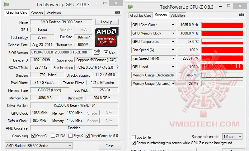 ความเร็วเดิมๆของ SAPPHIRE NITRO R9 380 ครับ Baseclock Core 985Mhz Memory 1450Mhz เป็นสเปกเดิมๆที่โอเวอร์คล๊อกกันมาจากโรงงาน