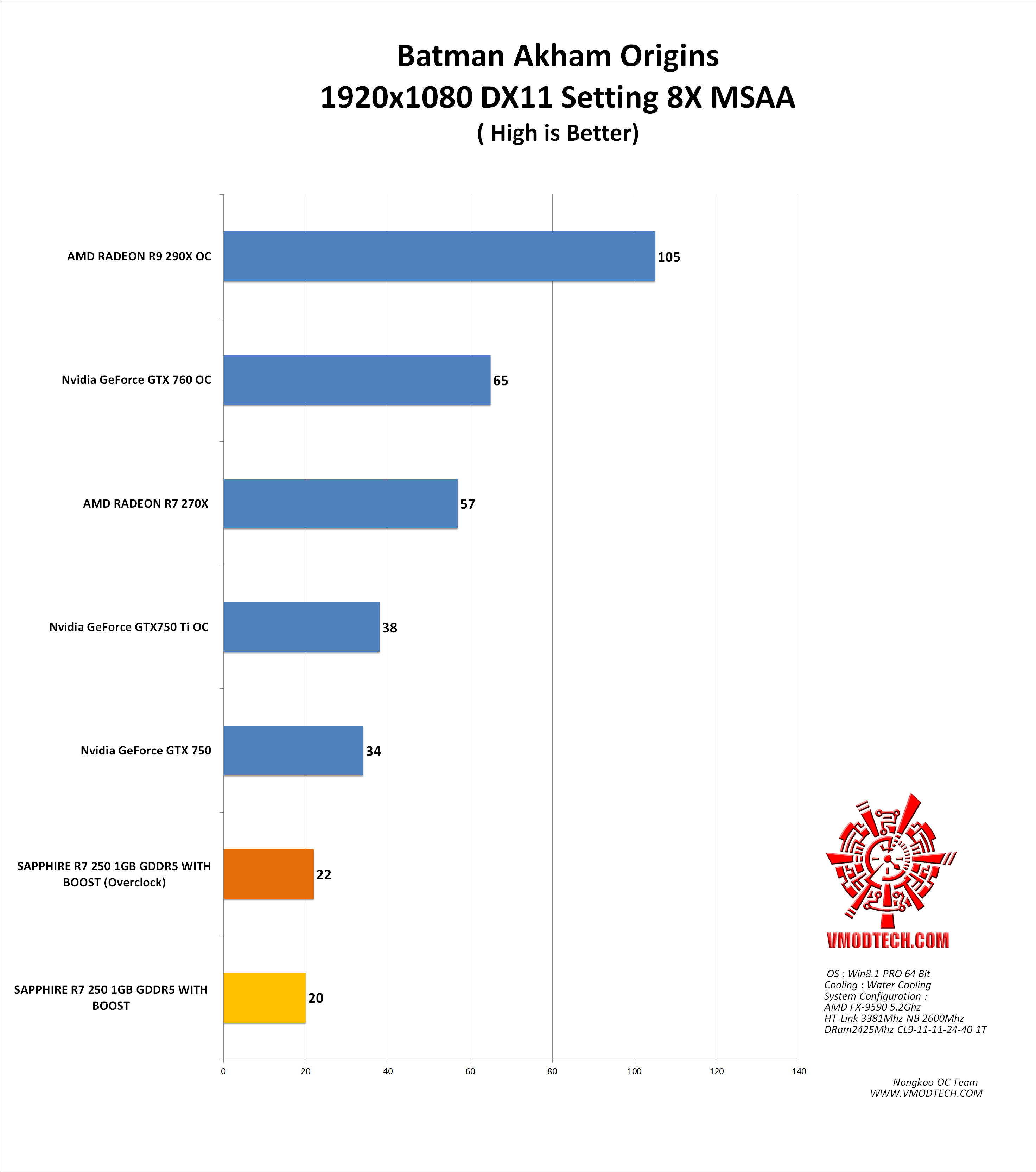ก็มาถึงช่วงท้ายกันครับสำหรับการทดสอบ SAPPHIRE R7 250 1GB GDDR5 WITH BOOST ที่วันนี้สร้างประสิทธิภาพได้อย่างน่าประทับใจครับ โดยโอเวอร์คล๊อกใช้งานกันยาวๆที่ความเร็ว Core 1254Mhz Memory 1526Mhz ตลอดการทดสอบอย่างมีเสถียรภาพ ซึ่งถ้าจะมองถึงการเปรียบจากรุ่นก่อนตามที่ผมเคยทดสอบกราฟฟิกการ์ดในยี่ห้อ SAPPHIRE นี้ในรุ่น HD 7730 1GB DDR5 แรงขึ้นมากกว่าเดิมครับ ถึงแม้เราจะมองว่าเป็นการนำ HD 7730 มารีเนมใหม่แต่ในการรีเนมนั้นก็ได้พัฒนาค่าความแรงมากขึ้นด้วยทั้งค่า Core/Mem ซึ่งเพิ่มขึ้นมากกว่าเดิมเยอะครับและจุดหลักๆเลยคือโอเวอร์คล๊อกได้ง่ายขึ้นโดยเล่นกันง่ายๆที่ Core 1200Mhz+ แบบง่ายๆไม่ต้องเพิ่มไฟเลี้ยงซึ่งเมื่อเทียบกับ HD 7730 แล้วนั้นจะตันอยู่แถวๆ Core 900Mhz+ เท่านั้นเองครับ อีกจุดเด่นหนึ่งที่ผมสังเกตุสำหรับ SAPPHIRE R7 250 1GB GDDR5 WITH BOOST คือความมีสเถียรภาพเพิ่มมากขึ้นในการใช้งาน นี่คงเป็นจุดหลักๆที่ผมเปรียบเทียบกับการ์ดจอในซีรี่ย์รุ่นก่อนอย่าง HD 7730 กับ R7 250 เป็นยี่ห้อเดียวกันและพัฒนาต่อเนื่องกันมา ที่สำคัญของการ์ดจอรุ่นนี้คือไม่ต้องต่อไฟเลี้ยงเพิ่มครับทำให้อัตตราการบริโภคไฟนั้นออกมาต่ำมากจริงๆแม้ว่าระบบที่ผมใช้ทดสอบด้วยซีพียู AMD FX-9590 ที่มีค่า TDP 220W รวมถึงอุปกรร์อื่นๆรวมอยู่ด้วยแม้จะโอเวอร์คล๊อกกันเต็มๆแล้วกินไฟแค่ 377วัตต์เท่านั้น ถือว่าเหมาะมากกับท่านที่ต้องการจัดเซ็ตประหยัดไม่อลังการมากแต่เน้นใช้งานที่ไม่ต้องเปิดกราฟฟิกแบบสุดๆ แต่ลดรายละเอียดคอนฟิกกราฟฟิกให้ต่ำลงรับรองว่าเล่นได้ทุกเกมส์อย่างแน่นอนครับและที่สำคัญตัวการ์ดจอ SAPPHIRE R7 250 1GB GDDR5 WITH BOOST นั้นยังรองรับการทำงานระบบ MANTLE เต็มรูปแบบอีกด้วยอีกทั้งยังสามารถนำไปเชื่อมต่อการทำงานกับซีพียู AMD A10-7850K หรือ A10-7700K ใช้งานระบบ Dual Graphic ได้อีกด้วยคุ้มค่ากันจริงๆ ถือว่าเป็นการ์ดจอในระดับล่างที่น่าสนใจอย่างมากครับด้วยราคาที่ไม่แพงมากอยู่ราวๆ 3พันต้นๆ ผมคิดว่าเป็นตัวเลือกที่ดีและคุ้มค่ามากเลยทีเดียวสำหรับในวันนี้กระผมก็ขอตัวลาไปก่อน พบกันใหม่เร็วๆนี้กับรีวิวอุปกรณ์ใหม่ๆจัดเต็มทุกการทดสอบที่ Vmodtech.com สวัสดีครับ