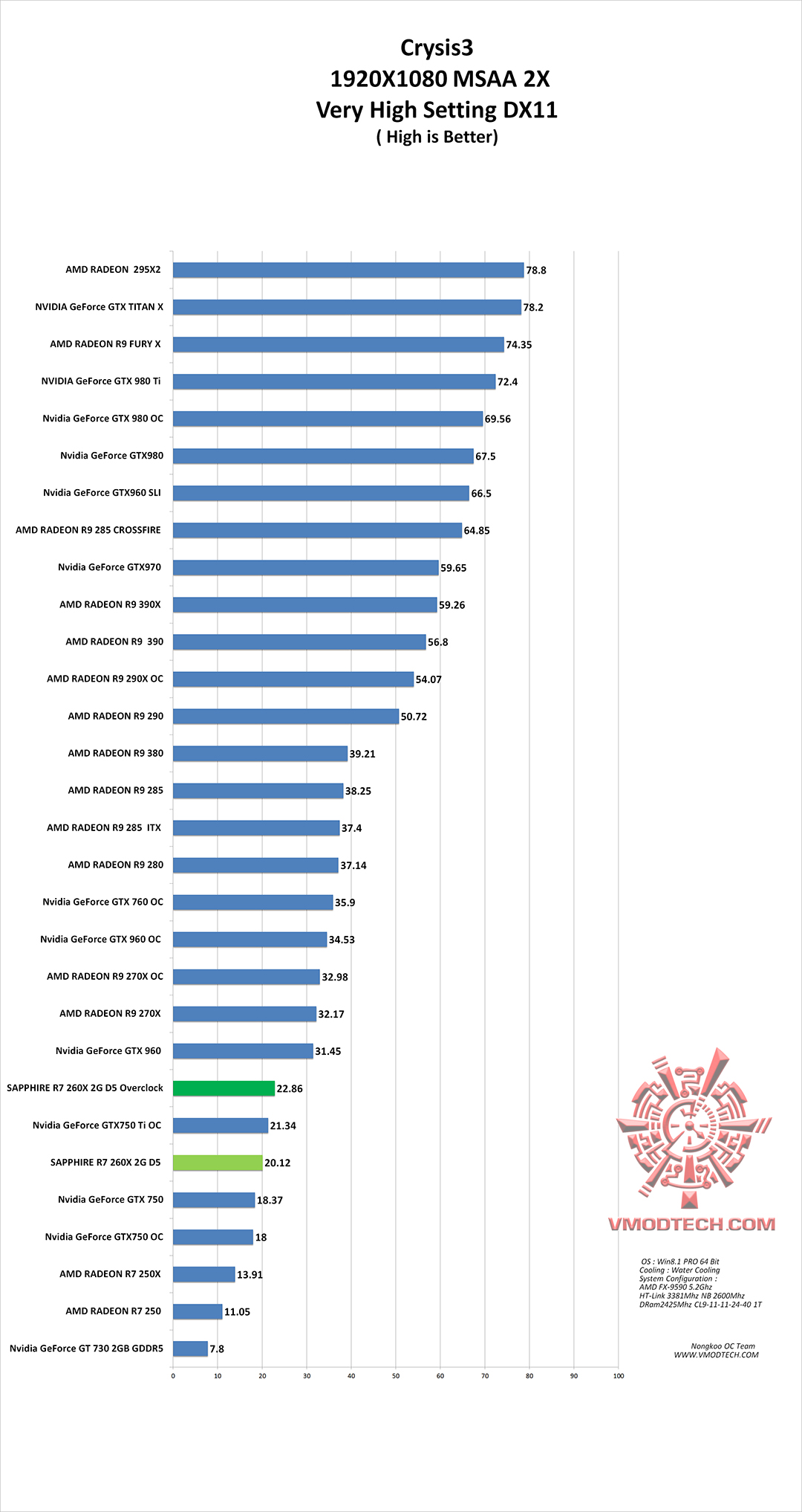 Crysis3 ในระดับ Very High 2X MSAA ทำเฟรมเรตได้ 22เฟรมเรต