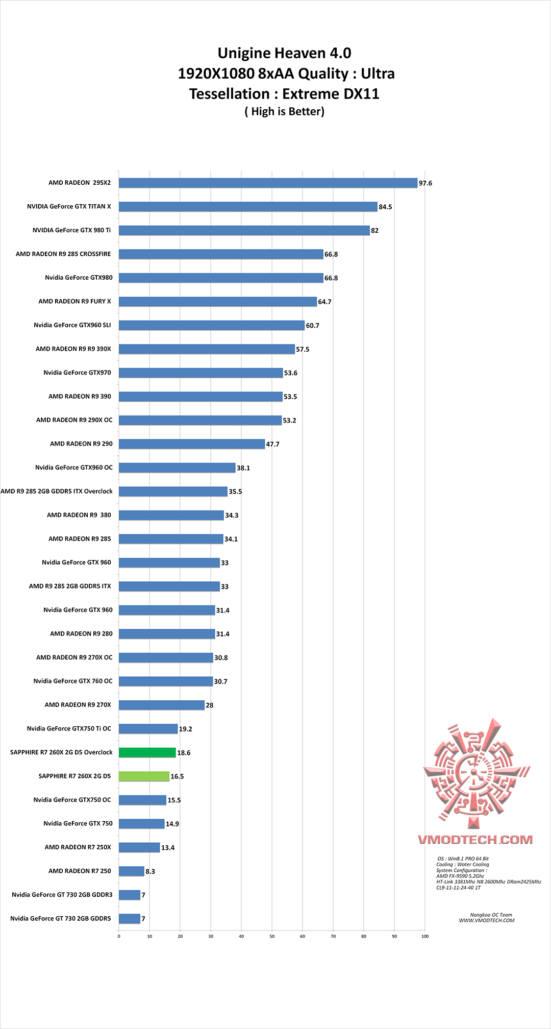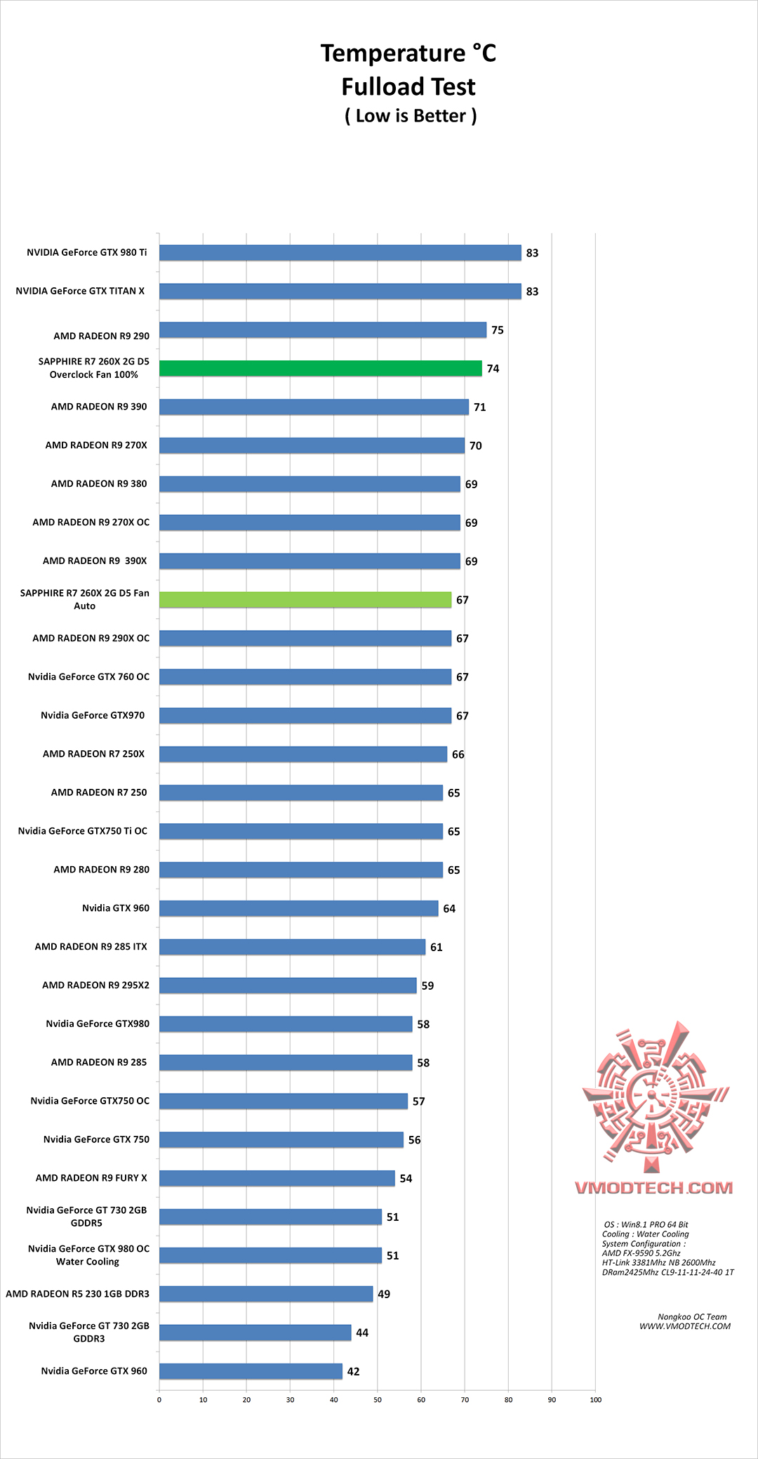 ก็มาถึงช่วงท้ายกันครับสำหรับการทดสอบ SAPPHIRE R7 260X 2G D5 ที่วันนี้ก็ถือว่าทำประสิทธิภาพได้ดีในระดับหนึ่งในกราฟฟิการ์ดในระดับกลางๆ โดยในการใช้งานเล่นเกมส์ควรเน้นปรับรายละเอียดให้เหมาะสมกับเกมส์ครับประมาณ Normal - High เน้นปิด AA ผมมองว่าในระดับความละเอียด 1080P นี่เล่นได้อย่างลื่นไหลทุกเกมส์อย่างแน่นอน ส่วนผลทดสอบด้าน 3D ก็ทำประสิทธิภาพออกมาได้ดีครับรวมไปถึงประสิทธิภาพในการโอเวอร์คล๊อกรีดพลังเพิ่มก็ทำได้ดีด้วยเช่นกัน ด้านการระบายความร้อนในจุดนนี้ถือว่าดีมากครับกับอุณหภูมิฟูลโหลดเพียงแค่ 67องศาฯเท่านั้นเอง กับดีไซน์ในการออกแบบที่มีขนาดเล็กกระทัดรัดและอัตราการบริโภคไฟที่ต่ำก็น่าจะเหมาะกับท่านที่กำลังมองหากราฟฟิการ์ดในระดับกลางๆประหยัดคุ้มค่า SAPPHIRE R7 260X 2G D5 น่าจะเป็นตัวเลือกที่น่าสนใจอีกตัวหนึ่งเลยทีเดียว สำหรับราคาวางจำหน่ายในประเทศไทยอยู่ที่ 4XXXบาทต้นๆ สำหรับในวันนี้กระผมก็ขอตัวลาไปก่อน พบกันใหม่เร็วๆนี้กับรีวิวอุปกรณ์ใหม่ๆจัดเต็มทุกการทดสอบที่ Vmodtech.com สวัสดีครับ