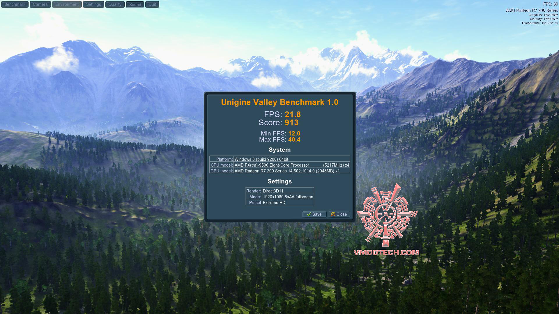 Unigine Valley 1.0 เฟรมเรตอยู่ที่ 21.1เฟรมเรตครับ