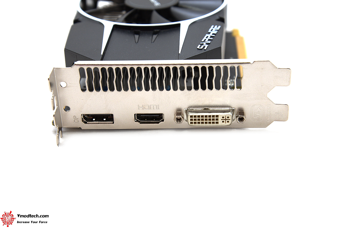 อินตอร์เฟสด้านหลังมีอยู่ 3ช่องคือ 1 x DVI-I , 1 x HDMI , 1 x DisplayPort