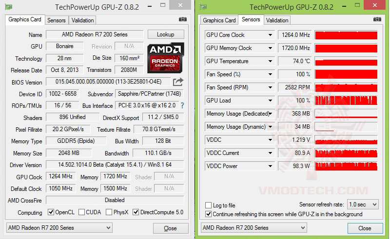 ความเร็วเดิมๆของ SAPPHIRE R7 260X 2G D5 ครับ Baseclock Core 1050Mhz Memory 1500Mhz เป็นสเปกเดิมๆที่มาจากโรงงาน