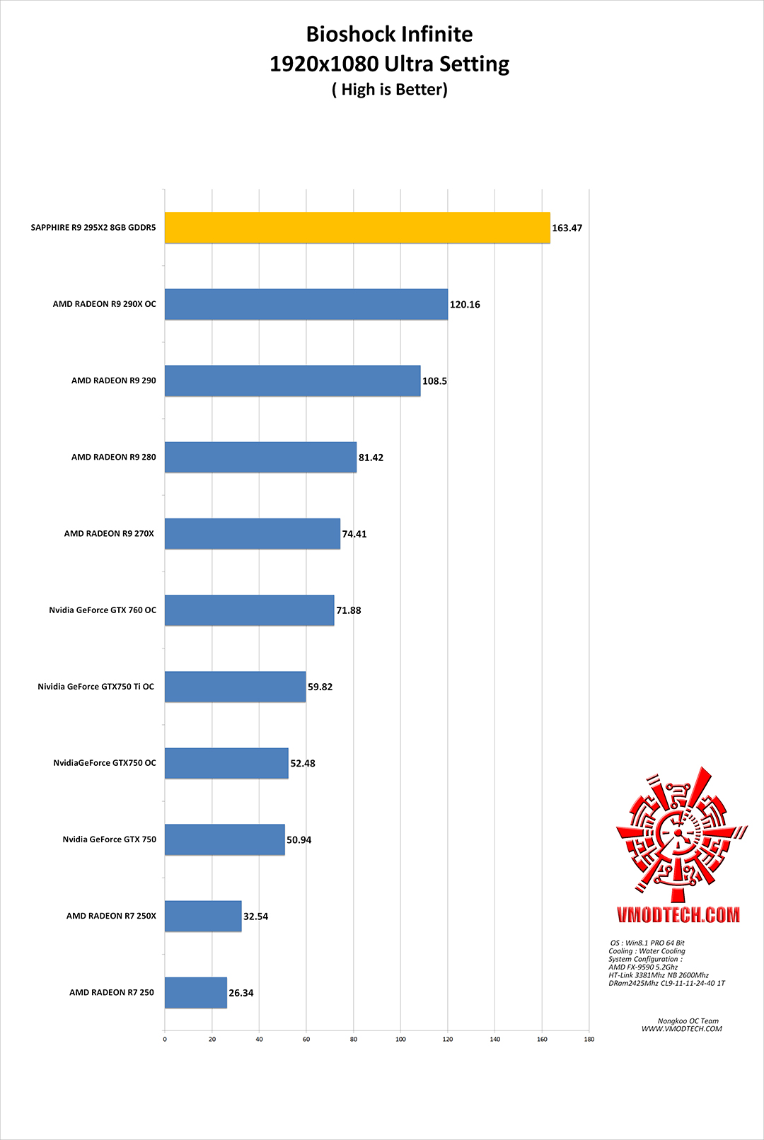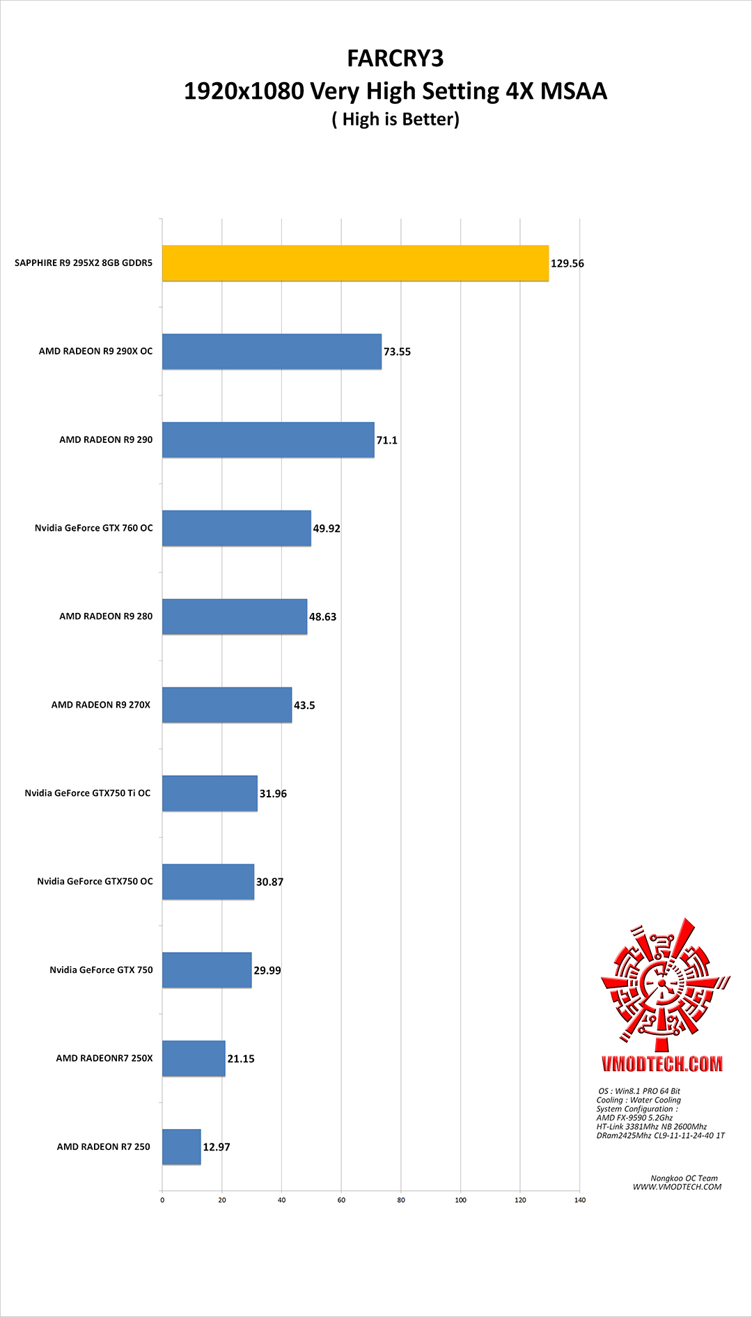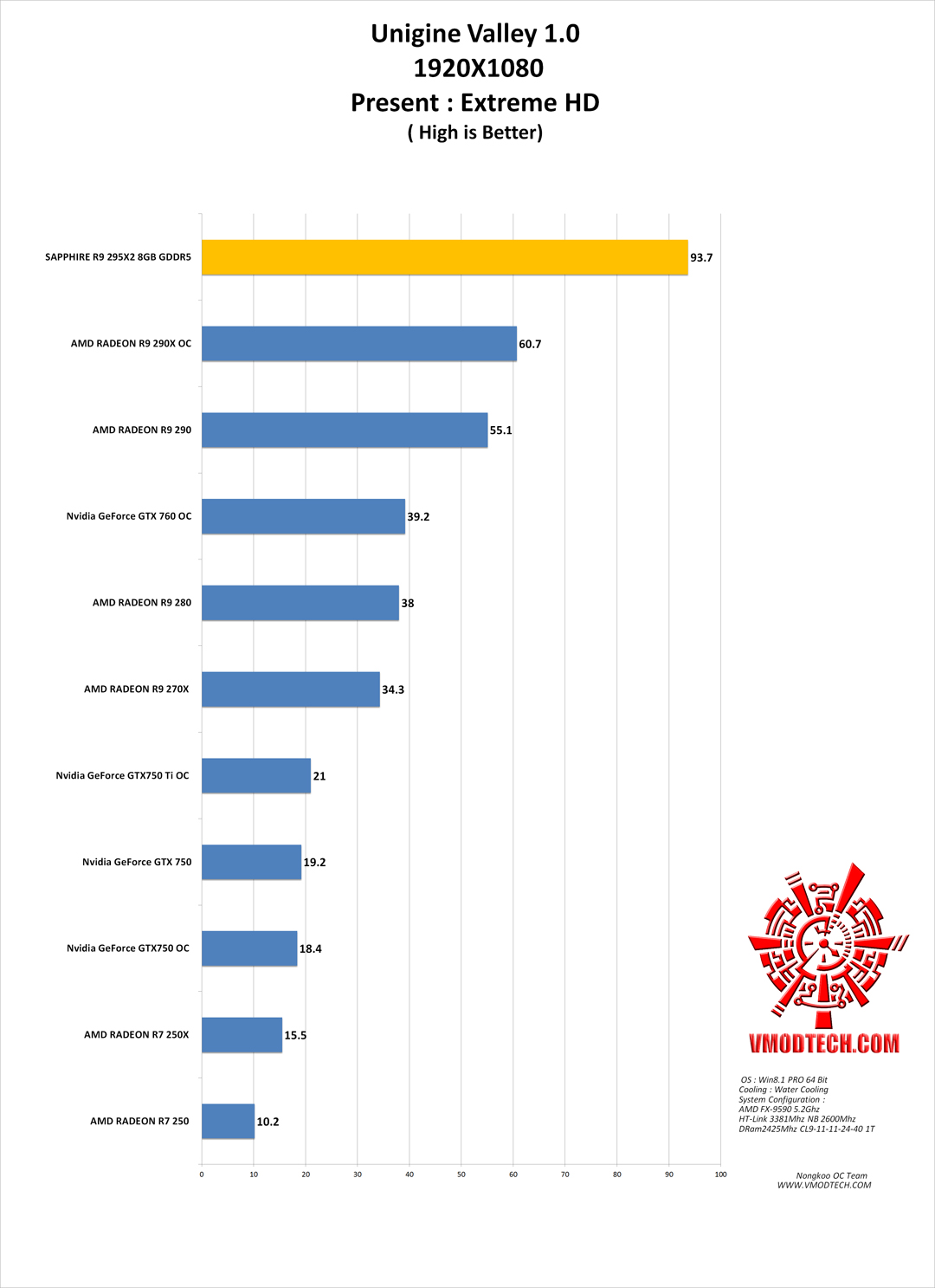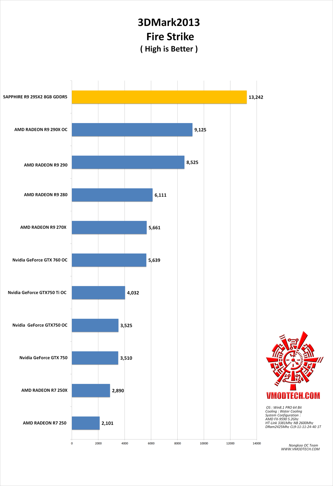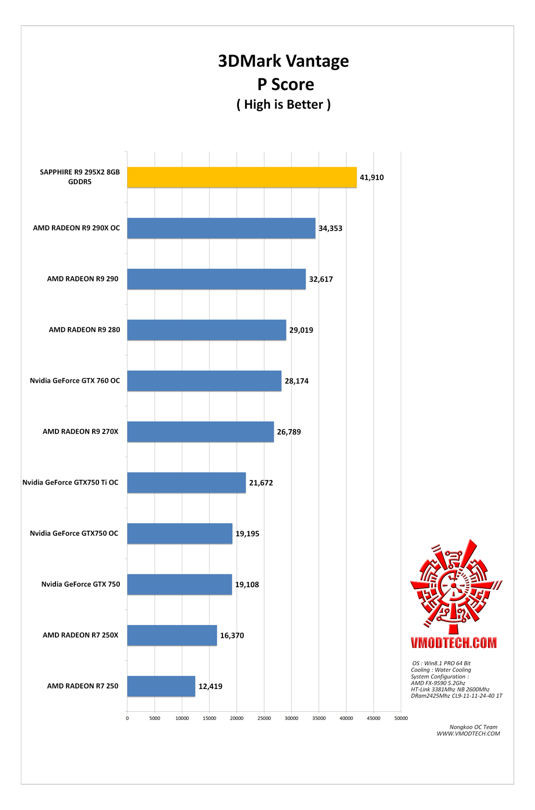 ก็มาถึงช่วงท้ายกันครับสำหรับการทดสอบ SAPPHIRE R9 295X2 8GB GDDR5 ที่ วันนี้สร้างประสิทธิภาพไดีดีเยี่ยมมากๆเลยทีเดียวครับ สมกับเป็นกราฟฟิกการ์ดที่แรงที่สุดในโลก ณ เวลานี้เลยครับในระบบ AMD ที่วันนี้จัดซีพียูสุดแรงของทาง AMD อย่าง AMD FX-9590 มารีดประสิทธิภาพกันชนิดที่เรียกได้ว่าเต็มสูตรของระบบ AMD ท๊อปเจอท๊อปกันเลยทีเดียว กับคะแนนที่ออกมาเรียกได้ว่าแรงจัดมากๆครับในการเทส Benchmark ต่างๆ รวมไปถึงการทดสอบการใช้งานของเกมส์ที่เรียกได้ว่าลื่นไหลแทบทุกเกมส์ชนิดที่เฟรมเรตทะลุร้อยกันเลยทีเดียว ส่วนเกมส์ที่กินกราฟฟิกการ์ดมากๆก็ยังสามารถสร้างเฟรมเรตชนิดที่ลื่นไหลกันแบบสุดๆเช่นกัน ผมหวังว่าทุกๆท่านคงจะพอใจนะครับกับรีวิวในวันนี้ที่นำเอาการ์ดจอตัวแรงของทาง AMD มาประกบกับซีพียูตัวแรงที่สุดของทาง AMD ผมเชื่อว่า System นี้คงเป็นระบบในฝันของคนรักแบรนด์ AMD ไม่น้อยเลยทีเดียวคงพอเป็นแนวทางสำหรับท่านที่งบประมาณถึงและใจรักในระบบ AMD รับรองว่าแรงได้แบบไม่อายใครอย่างแน่นอน โดยราคาในต่างประเทศนั้นอยู่ราวๆ 1499ดอลล่าสหรัฐฯ ส่วนในไทยจะอยู่ราวๆ 5XXXXหมื่นบาทกลางๆครับ สำหรับในวันนี้กระผมก็ขอตัวลาไปก่อน พบกันใหม่เร็วๆนี้กับรีวิวอุปกรณ์ใหม่ๆจัดเต็มทุกการทดสอบที่ Vmodtech.com สวัสดีครับ