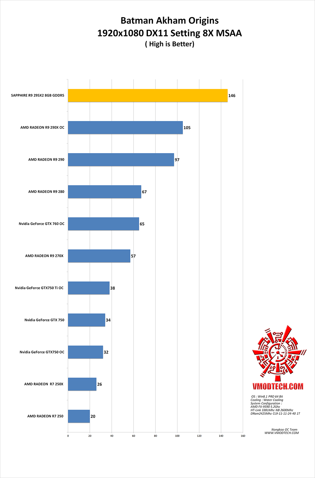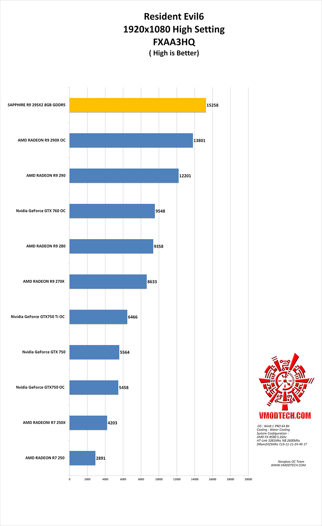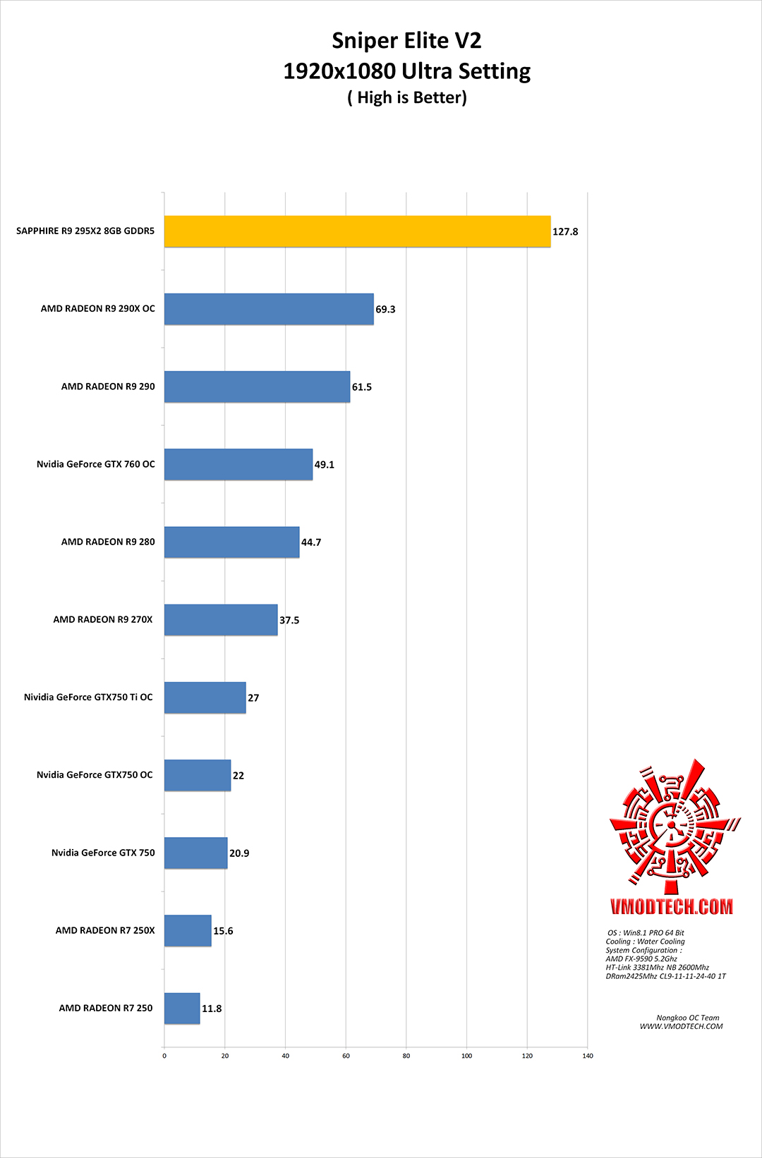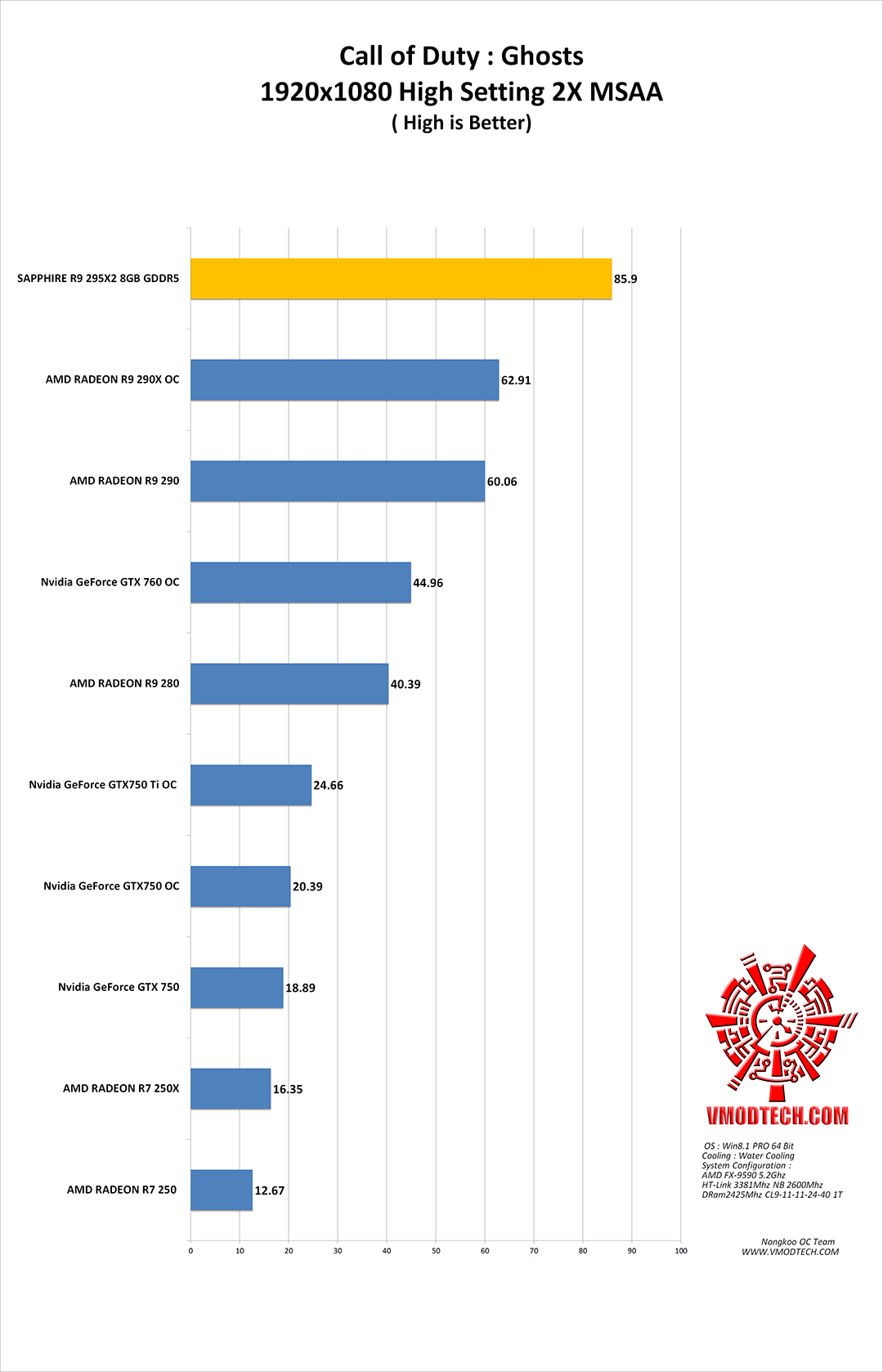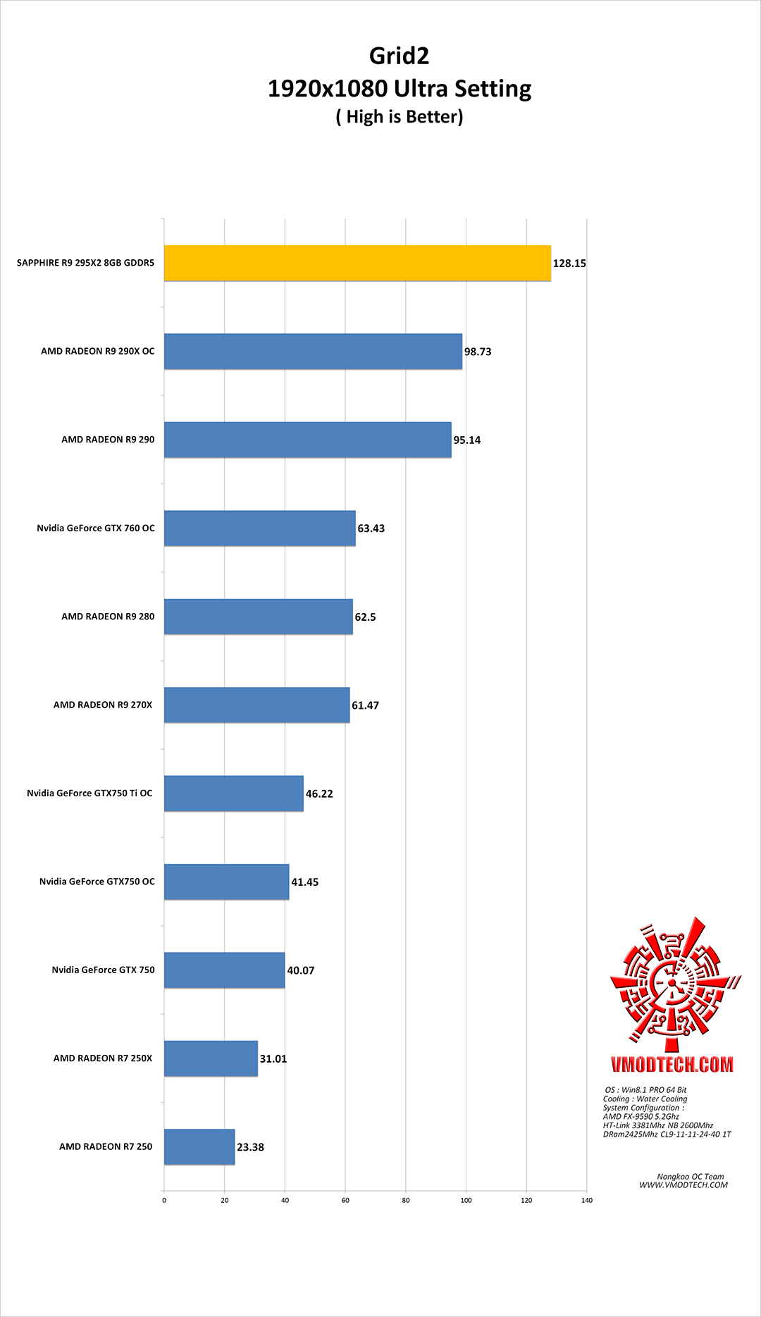 ก็มาถึงช่วงท้ายกันครับสำหรับการทดสอบ SAPPHIRE R9 295X2 8GB GDDR5 ที่ วันนี้สร้างประสิทธิภาพไดีดีเยี่ยมมากๆเลยทีเดียวครับ สมกับเป็นกราฟฟิกการ์ดที่แรงที่สุดในโลก ณ เวลานี้เลยครับในระบบ AMD ที่วันนี้จัดซีพียูสุดแรงของทาง AMD อย่าง AMD FX-9590 มารีดประสิทธิภาพกันชนิดที่เรียกได้ว่าเต็มสูตรของระบบ AMD ท๊อปเจอท๊อปกันเลยทีเดียว กับคะแนนที่ออกมาเรียกได้ว่าแรงจัดมากๆครับในการเทส Benchmark ต่างๆ รวมไปถึงการทดสอบการใช้งานของเกมส์ที่เรียกได้ว่าลื่นไหลแทบทุกเกมส์ชนิดที่เฟรมเรตทะลุร้อยกันเลยทีเดียว ส่วนเกมส์ที่กินกราฟฟิกการ์ดมากๆก็ยังสามารถสร้างเฟรมเรตชนิดที่ลื่นไหลกันแบบสุดๆเช่นกัน ผมหวังว่าทุกๆท่านคงจะพอใจนะครับกับรีวิวในวันนี้ที่นำเอาการ์ดจอตัวแรงของทาง AMD มาประกบกับซีพียูตัวแรงที่สุดของทาง AMD ผมเชื่อว่า System นี้คงเป็นระบบในฝันของคนรักแบรนด์ AMD ไม่น้อยเลยทีเดียวคงพอเป็นแนวทางสำหรับท่านที่งบประมาณถึงและใจรักในระบบ AMD รับรองว่าแรงได้แบบไม่อายใครอย่างแน่นอน โดยราคาในต่างประเทศนั้นอยู่ราวๆ 1499ดอลล่าสหรัฐฯ ส่วนในไทยจะอยู่ราวๆ 5XXXXหมื่นบาทกลางๆครับ สำหรับในวันนี้กระผมก็ขอตัวลาไปก่อน พบกันใหม่เร็วๆนี้กับรีวิวอุปกรณ์ใหม่ๆจัดเต็มทุกการทดสอบที่ Vmodtech.com สวัสดีครับ
