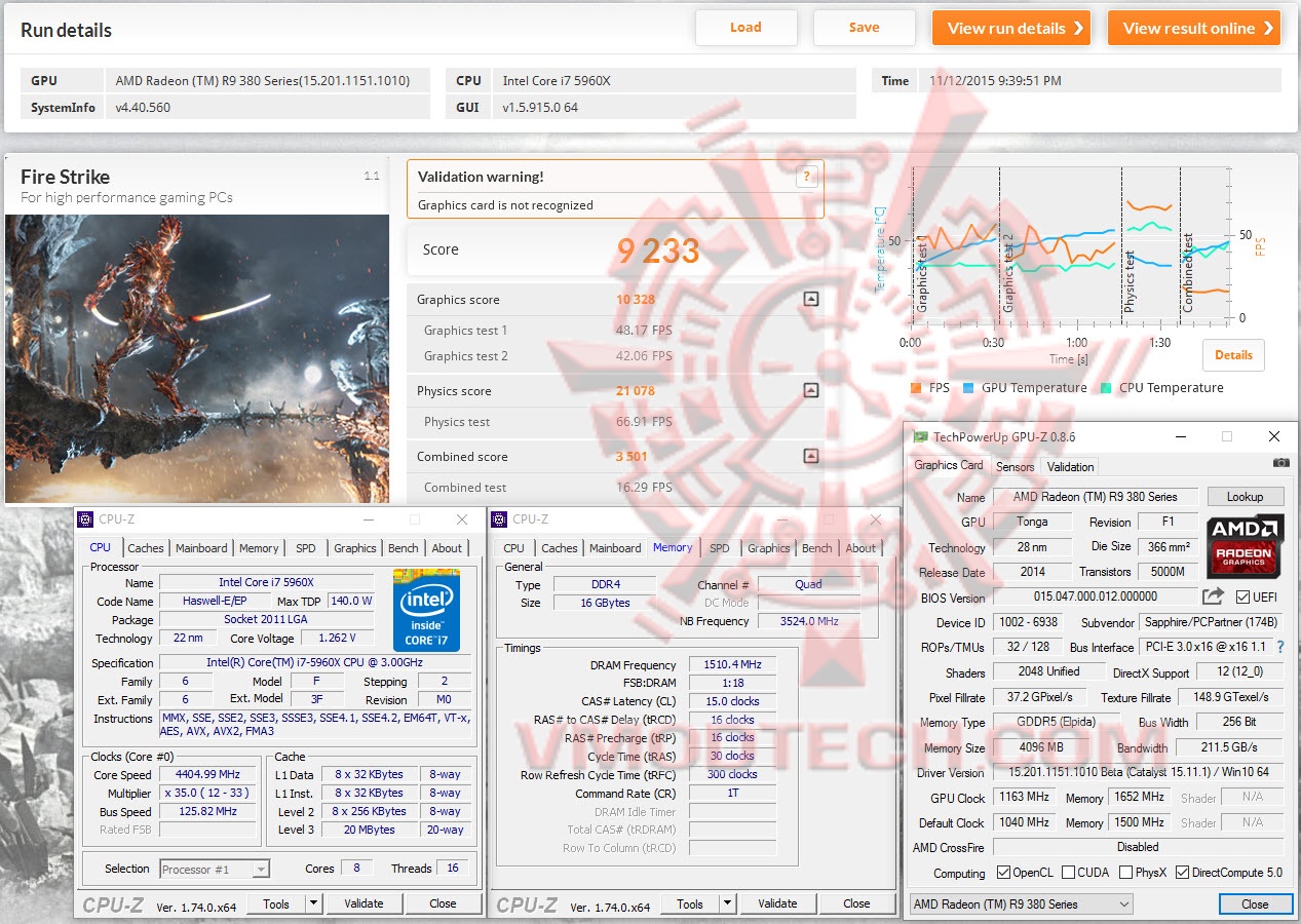 SAPPHIRE Radeon R9 380X Nitro @ 1040/1500 MHz Core/Mem