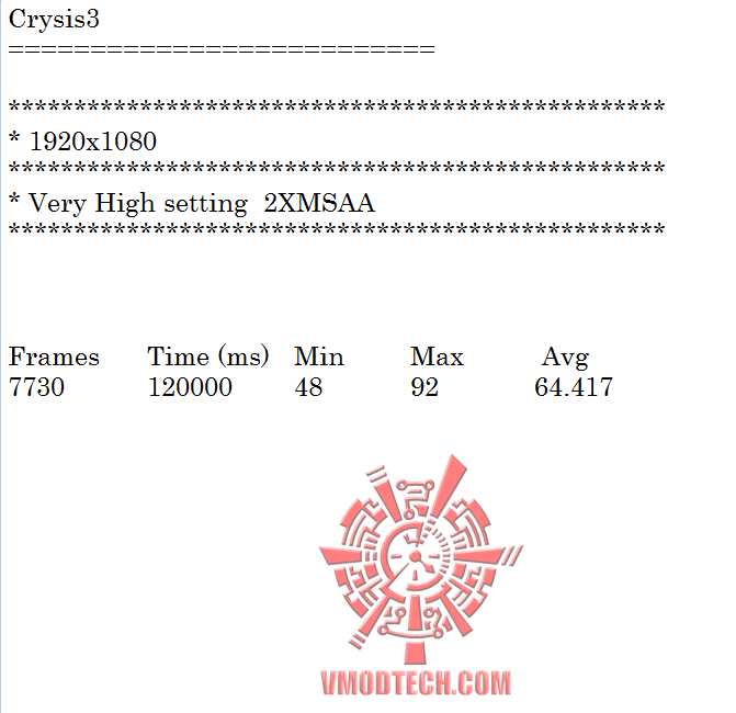 Crysis3 ในระดับ Very High 2X MSAA ก็ยังสามารถทำเฟรมเรตได้ 64.41เฟรมเรต แรงกันแบบลื่นๆครับ