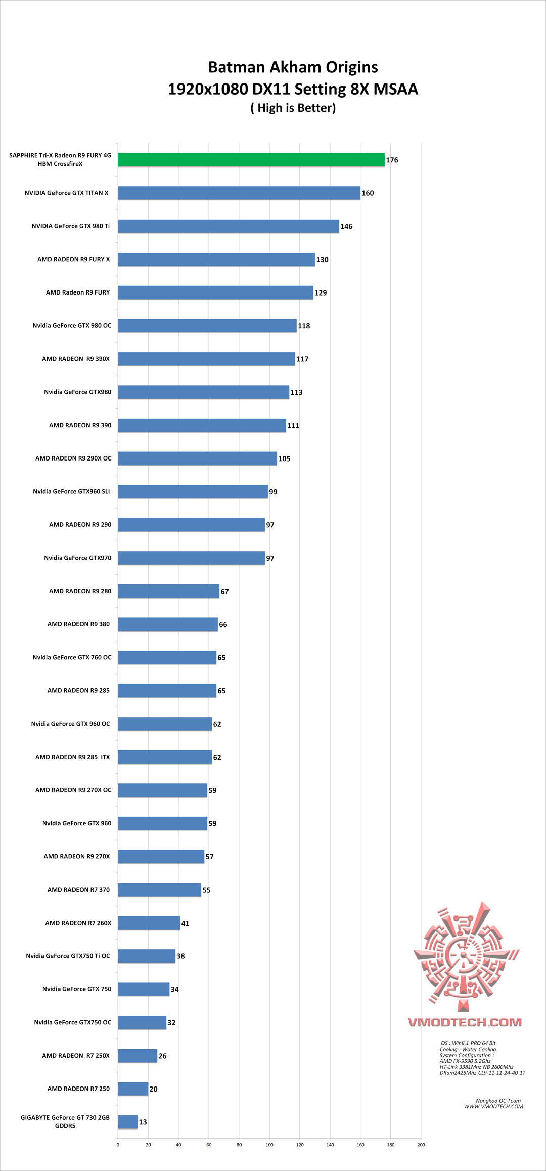 ก็มาถึงช่วงท้ายกันครับสำหรับการทดสอบ SAPPHIRE Tri-X Radeon R9 FURY 4G HBM CrossfireX ที่วันนี้ทำประสิทธิภาพได้อย่างอลังการจริงๆกับการรวมพลังของการ์ดจอในรุ่น AMD RADEON R9 FURY ที่สร้างผลคะแนนทั้ง 3D และเกมส์มิ่งออกมาได้อย่างน่าตกใจครับ เรียกได้ว่าเกมส์ทุกเกมส์เล่นได้อย่างลื่นไหลกันแบบสุดๆแน่นอนครับ ในส่วนของอัตราการบริโภคไฟตรงจุดนี้ผมไม่ได้ทำการทดสอบเนื่องจากเวลากระชั้นก็ต้องขออภัยด้วยนะครับ แต่ผมก็มีข้อมูลคร่าวๆมากับกราฟฟิกการ์ดในรุ่นนี้จะกินไฟอยู่ที่ 375W สองตัวรวม 750W บวกกับซิสเต็มที่ใช้งานคิดแบบคร่าวๆแล้วนั้นเพาวเวอร์ซัพพลายของท่านควรจะ 1000W ขึ้นไปคิดเผื่อไว้ก่อนน่าจะดีครับ ในส่วนของเรื่องความร้อนอันนี้ตัดทิ้งไปได้เลยครับสำหรับ SAPPHIRE Tri-X Radeon R9 FURY 4G HBM ตัวนี้เย็นจัดจริงๆทั้งในรอบพัดลม AUTO และปรับ 100% กับเสียงรบกวนที่เงียบมากๆ น่าจะเหมาะกับท่านที่ชอบอะไรแรงๆแนวเอ๊กตรีมแบบมาเป็นคู่ๆกับซิสเต็มแรงๆของกราฟฟิกการ์ด AMD ที่มากับเทคโนโลยีใหม่ล่าสุดอย่าง HBM พร้อมใช้งานในระดับ Full HD และ UHD 4K นั่นเองครับ รับรองว่าเซ็ตนี้ทำให้ท่านดูหล่อแบบจัดเต็มขึ้นมาทันทีแน่นอนครับ ในวันนี้กระผมก็ขอตัวลาไปก่อน พบกันใหม่เร็วๆนี้กับรีวิวอุปกรณ์ใหม่ๆจัดเต็มทุกการทดสอบที่ Vmodtech.com สวัสดีครับ