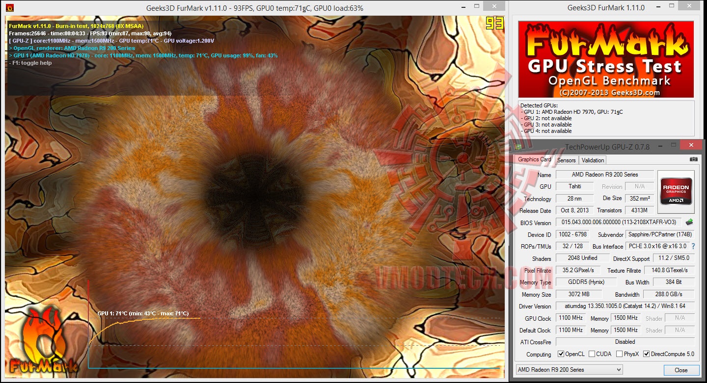 Burn ด้วย Furmark เป็นเวลาพักนึงครับ ความร้อนสูงสุดนั้นจะอยู่ที 71 องศาเซลเซียสเท่านั้นบนความเร็วมาตรฐานของการ์ด