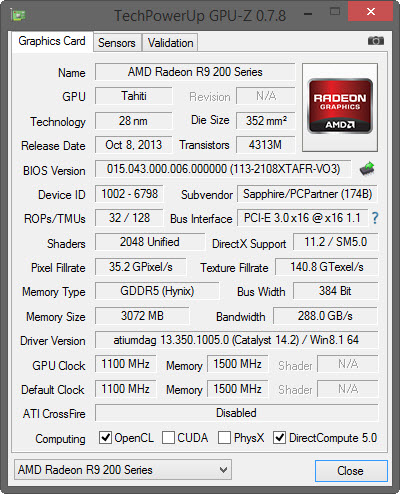 SAPPHIRE VAPOR-X R9 280X 3GB GDDR5 TRI-X OC WITH BOOST from GPUZ