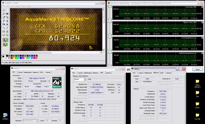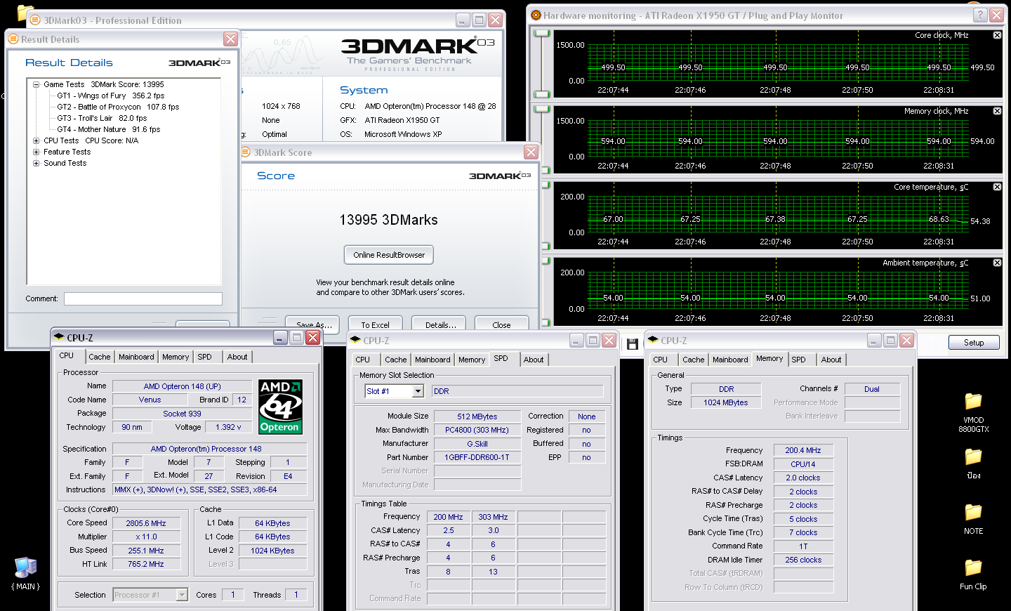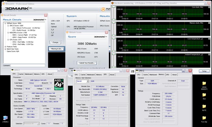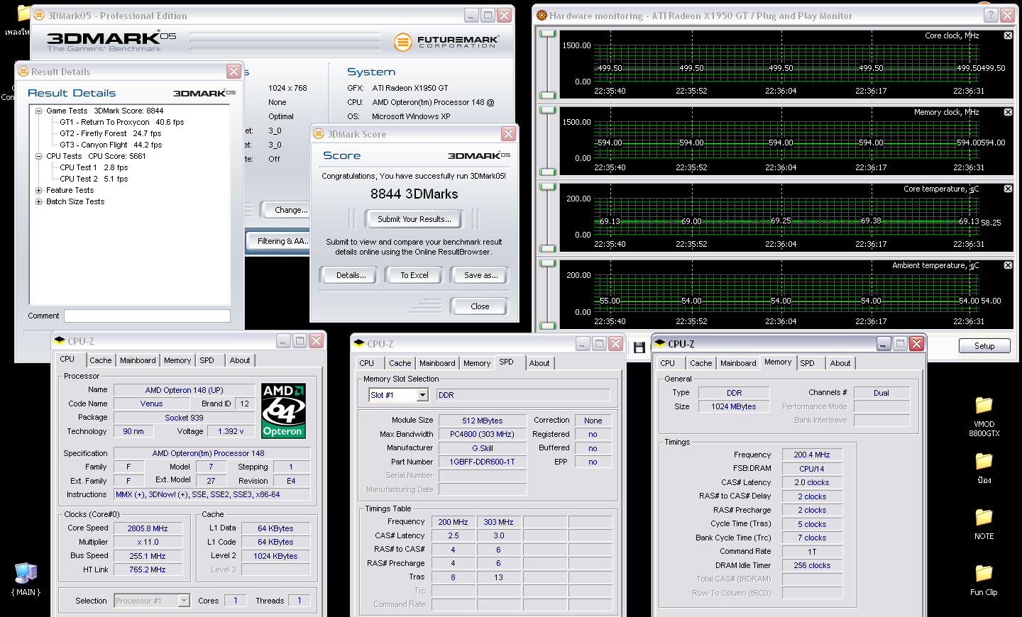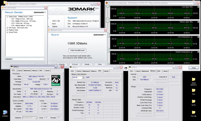 ที่เป็น AMD Opteron 148 ที่อัดขึ้นไปให้วิ่งที่ 2.8GHz และแรมก็วิ่งที่ 200MHz CL 2-2-2-5 เท่านั้น